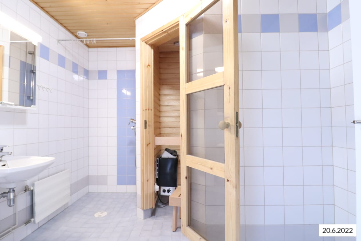 The kitchen has everything you need, and home chefs will be delighted with the dishwasher. The tiled bathroom has connections for a washing machine, and your own sauna adds a touch of luxury to everyday life.