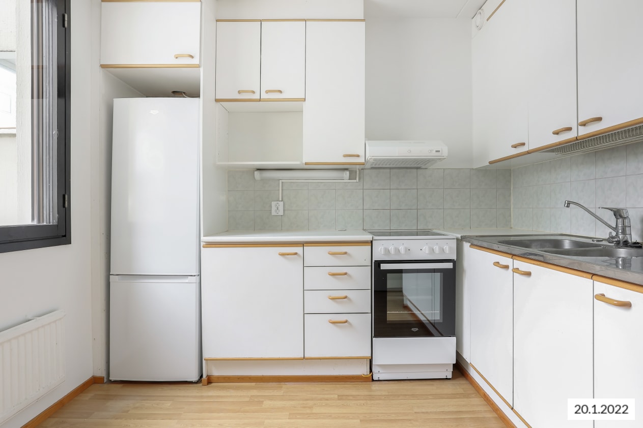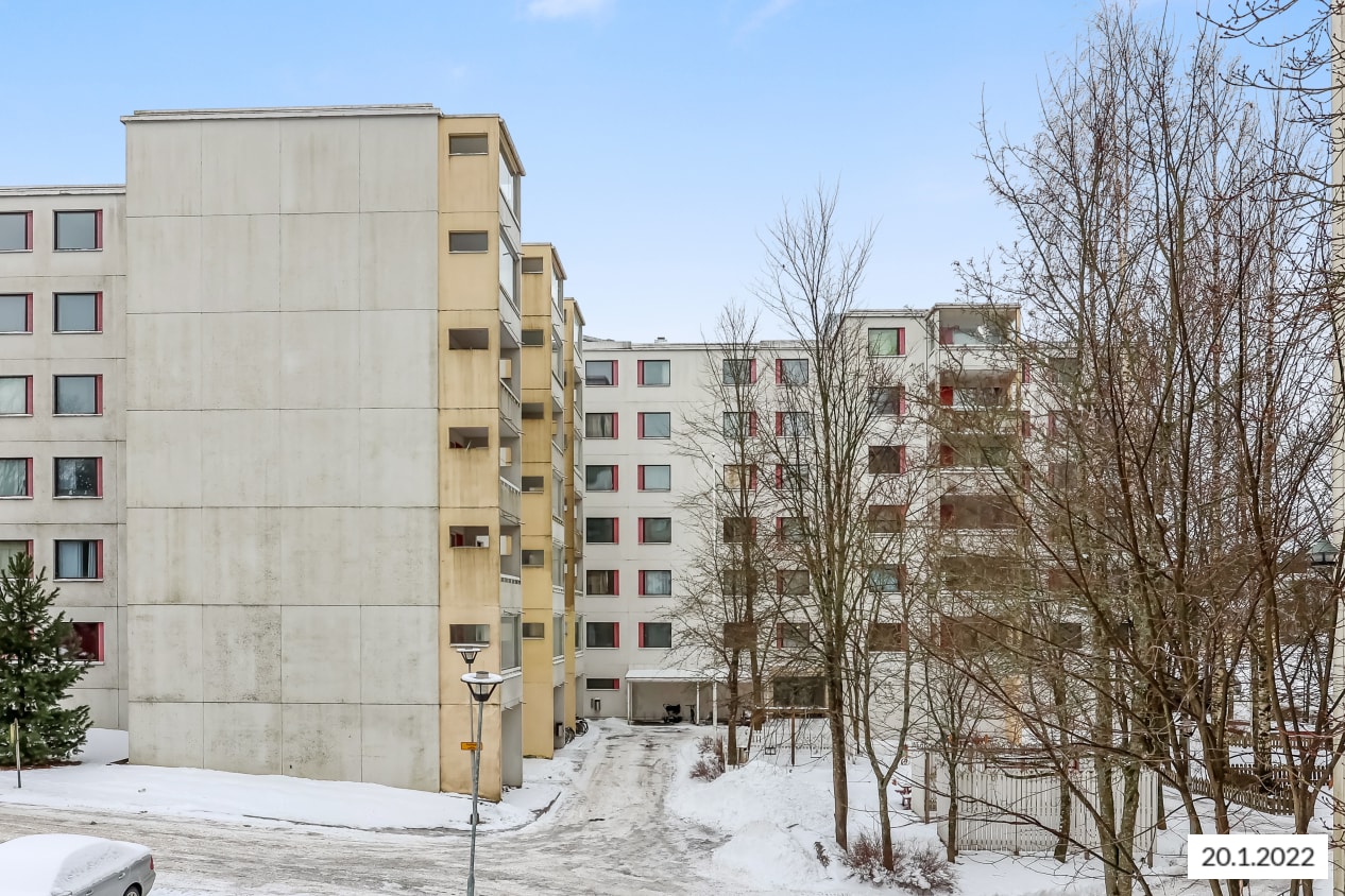 This large six-storey 1970s property has undergone facade refurbishment and benefits from an excellent location close to the centre and the railway station. The apartments range from studios to family-sized 3-bedroom + kitchen homes, and even the small studios have a balcony. Some of the balconies are glassed-in, and the communal laundry room is tidy and practical. This is a very traditional housing company with a sauna and general and bicycle storage facilities. There is a little play area in the courtyard and the building has cable TV, while queues for a parking space are likely.