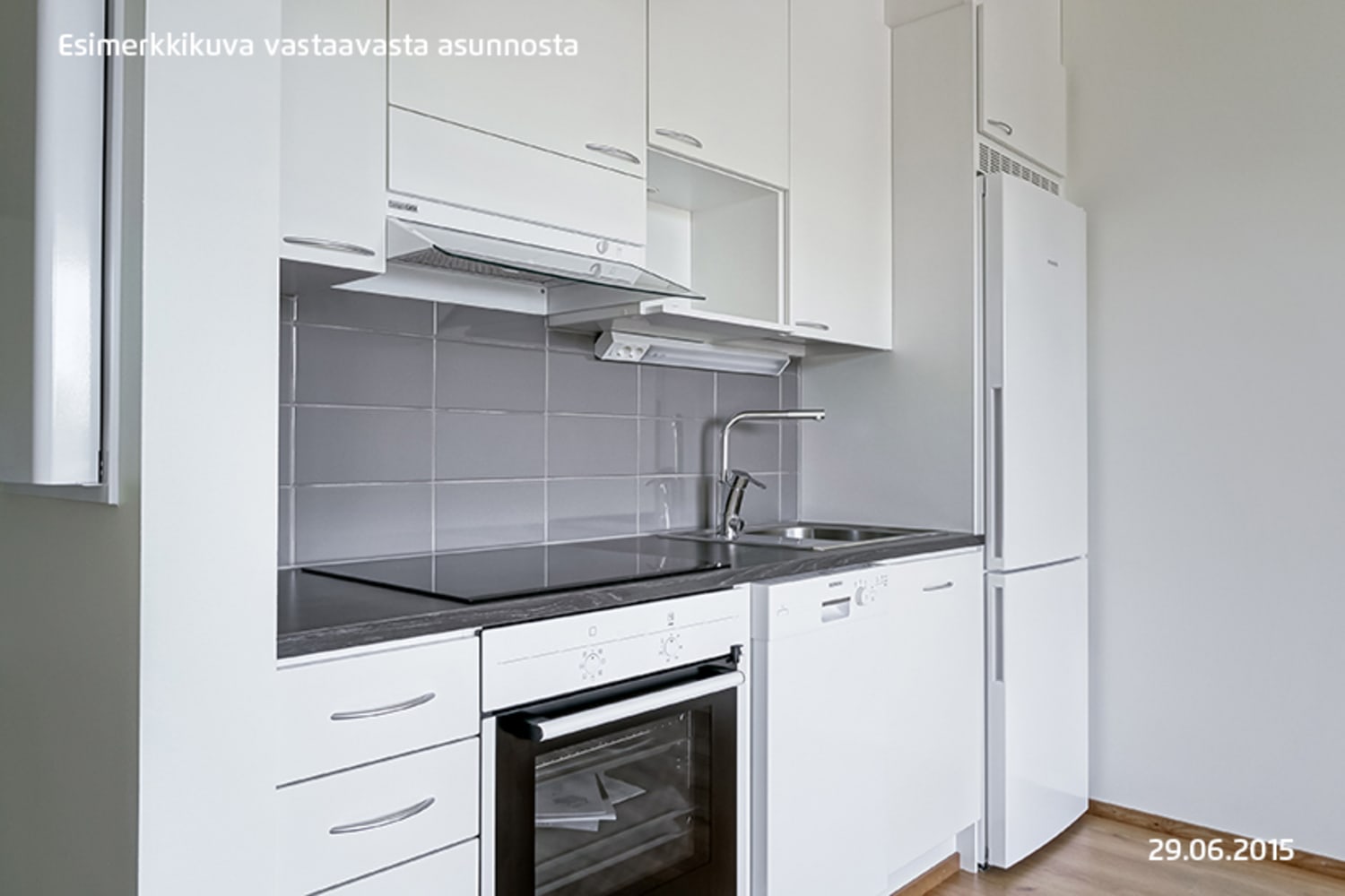 The floors of these light-filled homes are laid in laminate. The kitchen unit doors are white and the laminate worktops in a dark wood tone. The kitchen appliances comprise ceramic cooker, built-in oven, integrated dishwasher, and cold appliances. All appliances are white. The bathrooms are fully tiled. There is space for a washing machine and dryer.