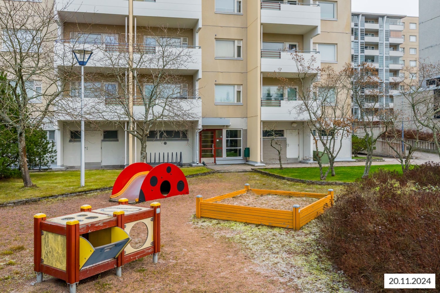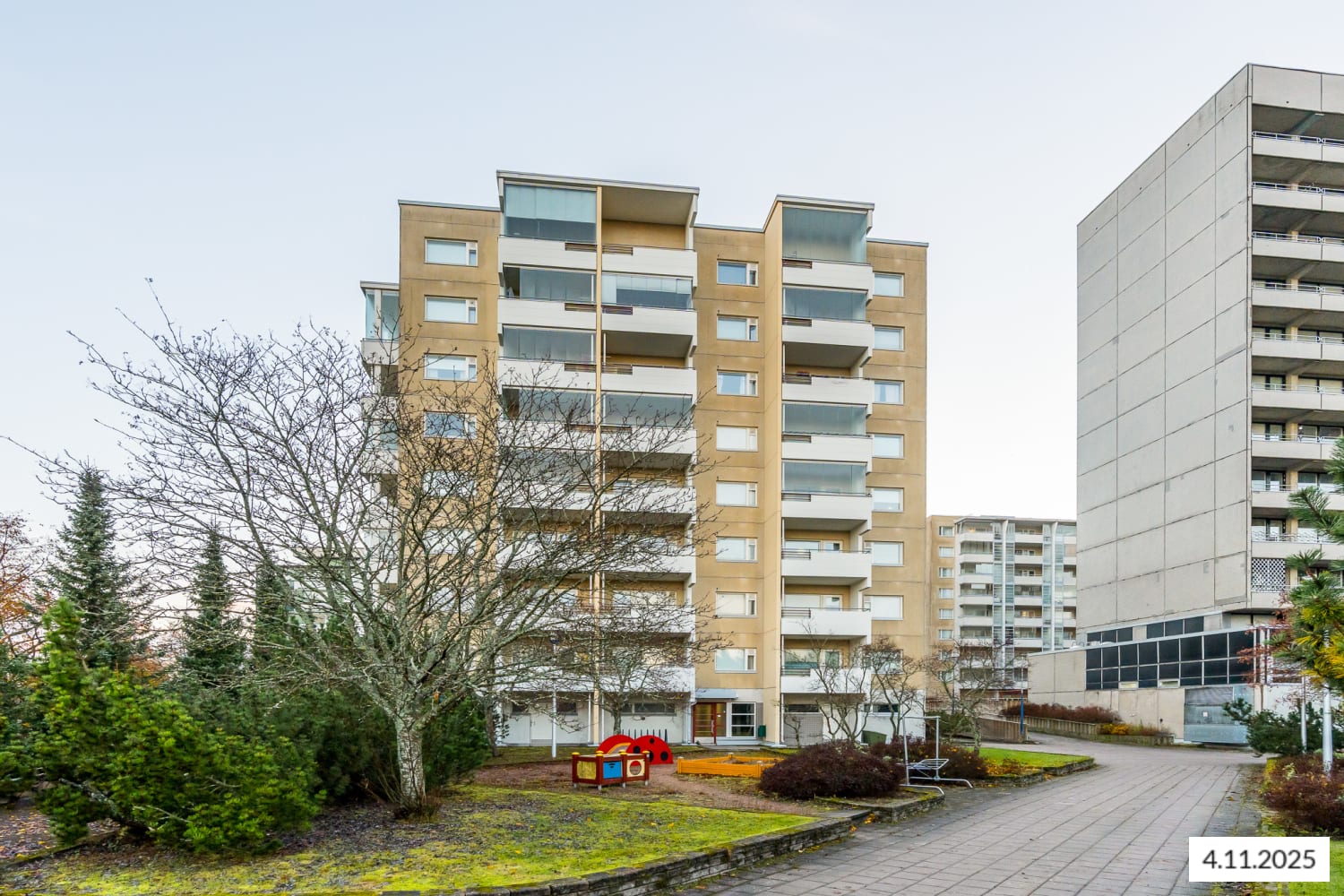 Raision Tasontorni is centrally located in the heart of Raisio. Nearby, you'll find various services and excellent transport connections, both private and public. There is a park area with a playground close to the building, and the housing company's yard also has a playground for children. This eight-story building with an elevator contains 75 m² three-room apartments and various sizes of two-room apartments.