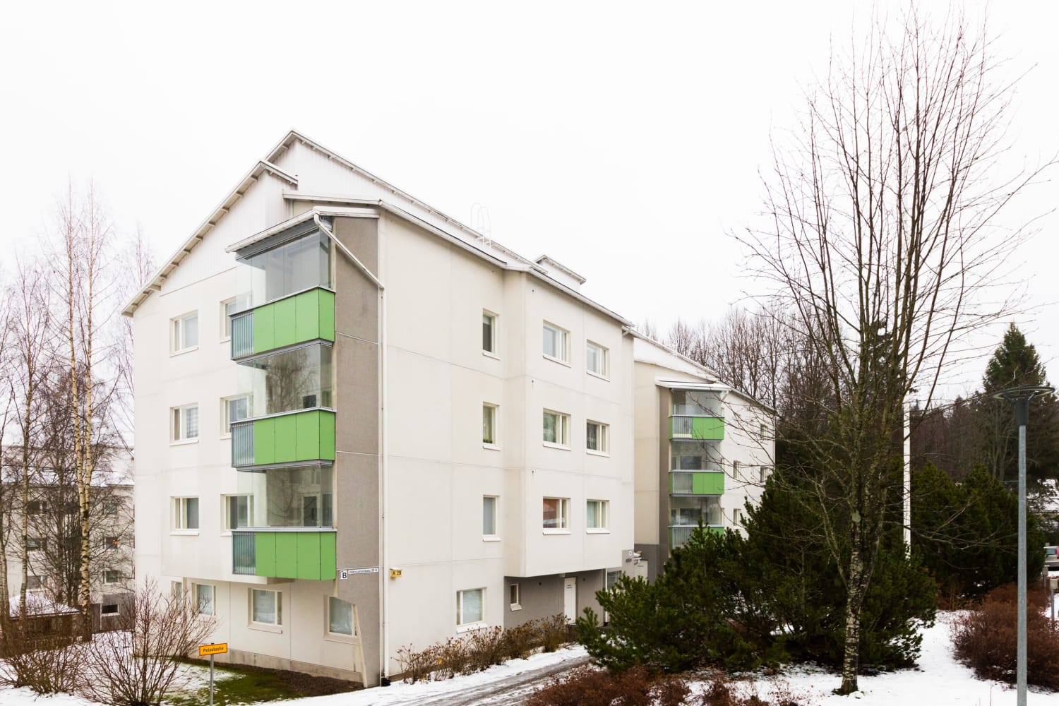 These two four-storey buildings have a total of 48 apartments. Completed in 1998, all the apartments have a balcony and there are parking spaces in the grounds. This is a leafy, child-friendly neighbourhood around 11 km from Tampere city centre. There are excellent areas for outdoor pursuits, including a swimming beach.