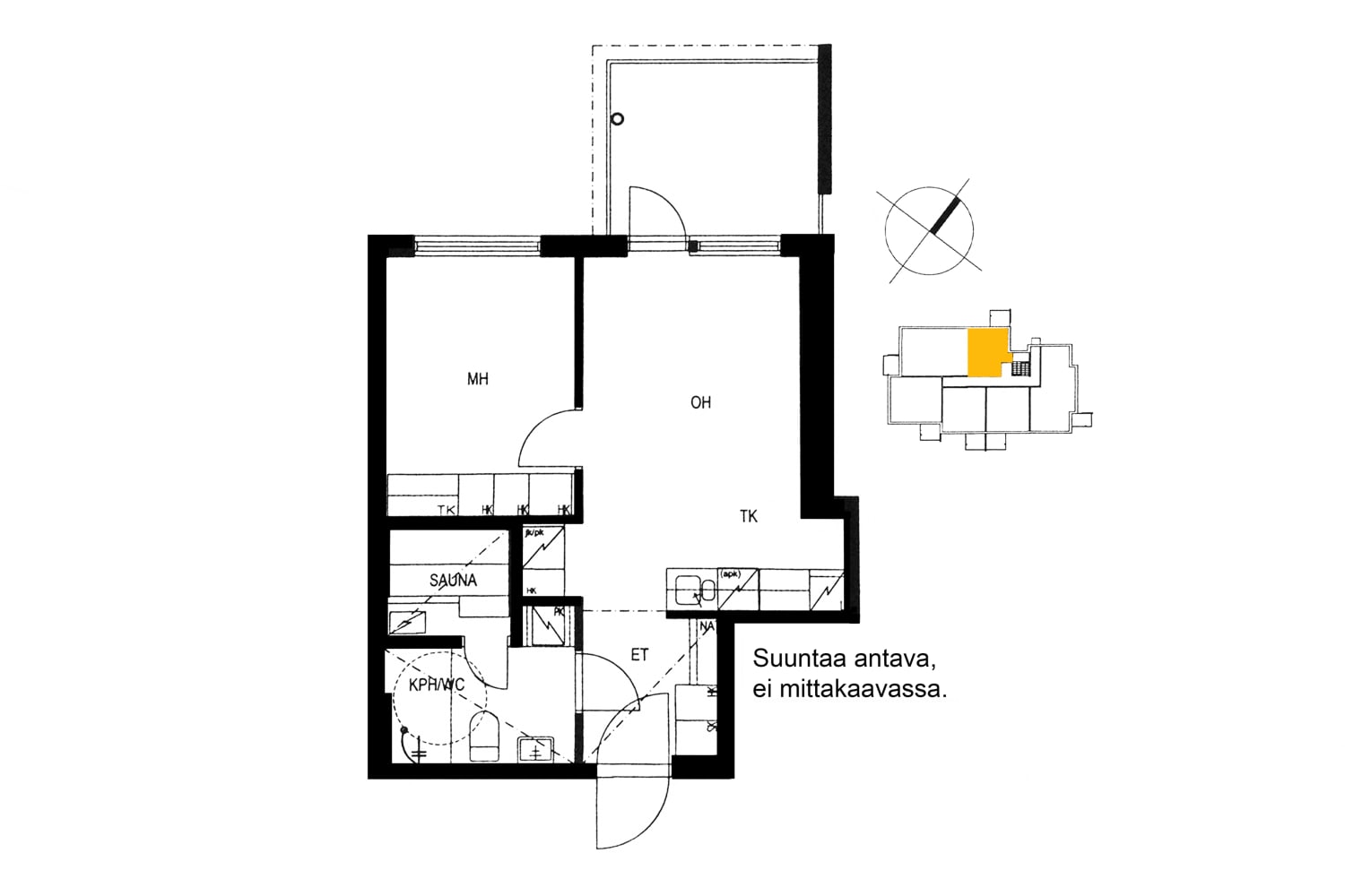 This apartment is very lighted due to great windows and the glassed balcony. The nearest bus stop is right in front of the housing company.