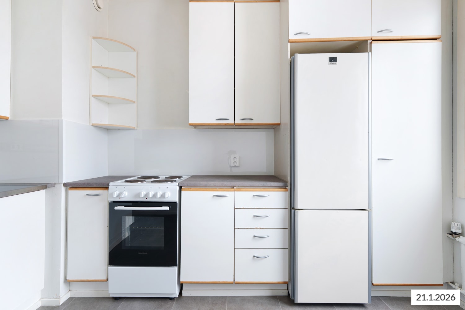 The home's traditional layout is functional and straightforward. The spacious kitchen provides ample room for a dining table by the window. The bathroom has space reserved for a washing machine and storage issues are resolved by the walk-in wardrobe in the hallway.
