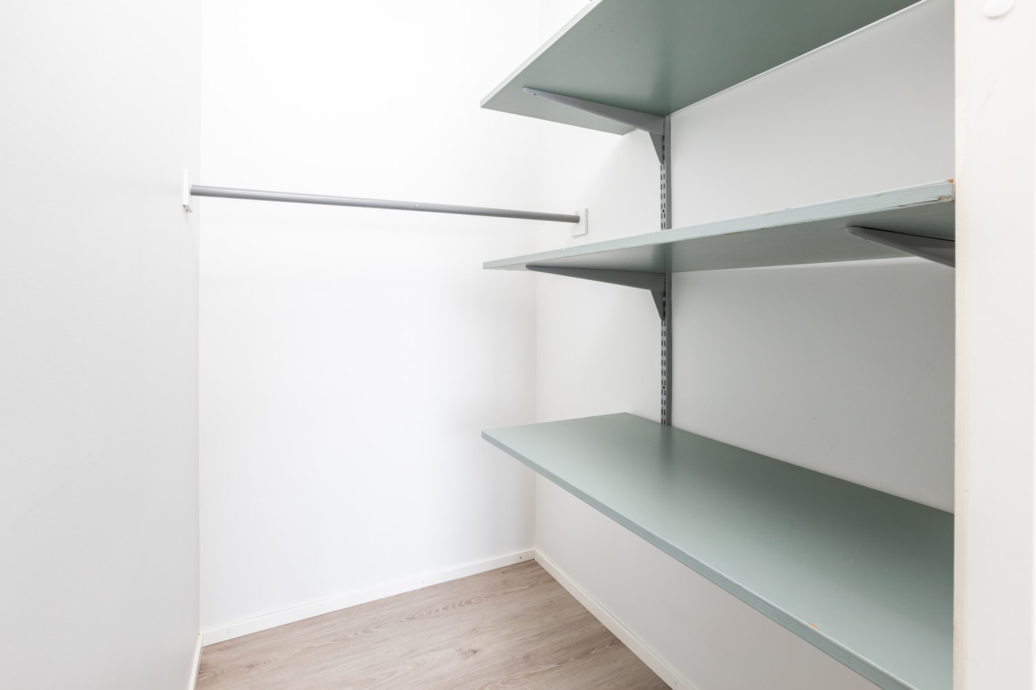 The kitchen has space for a dining table, and there are connections for your dishwasher. Thanks to the handy walk-in wardrobe, wardrobes do not take up wall space in the bedroom.