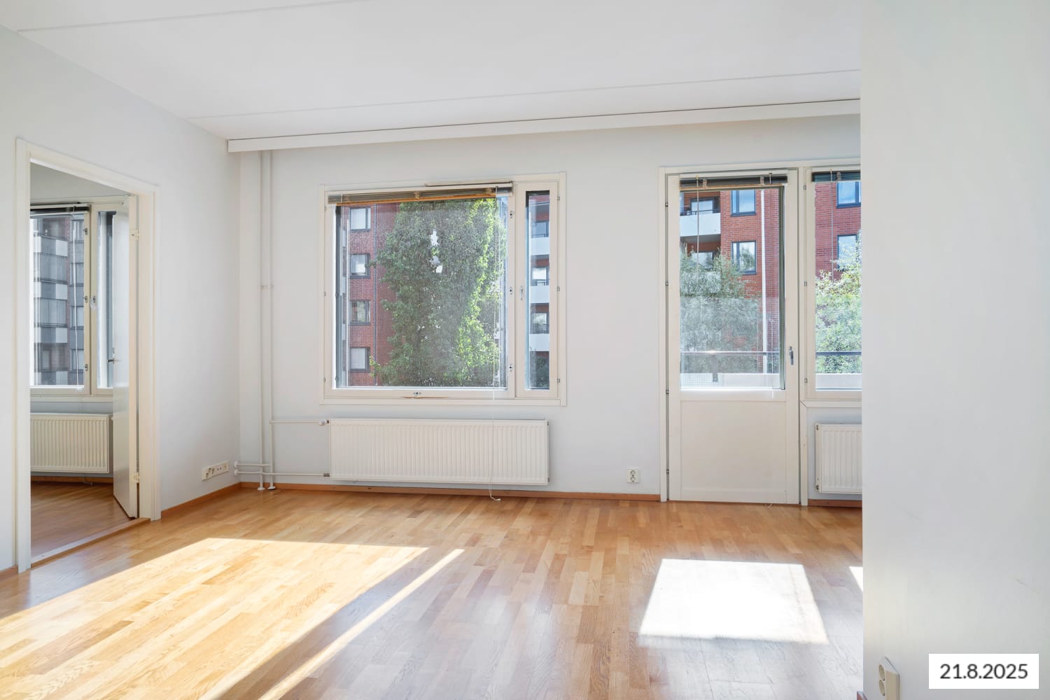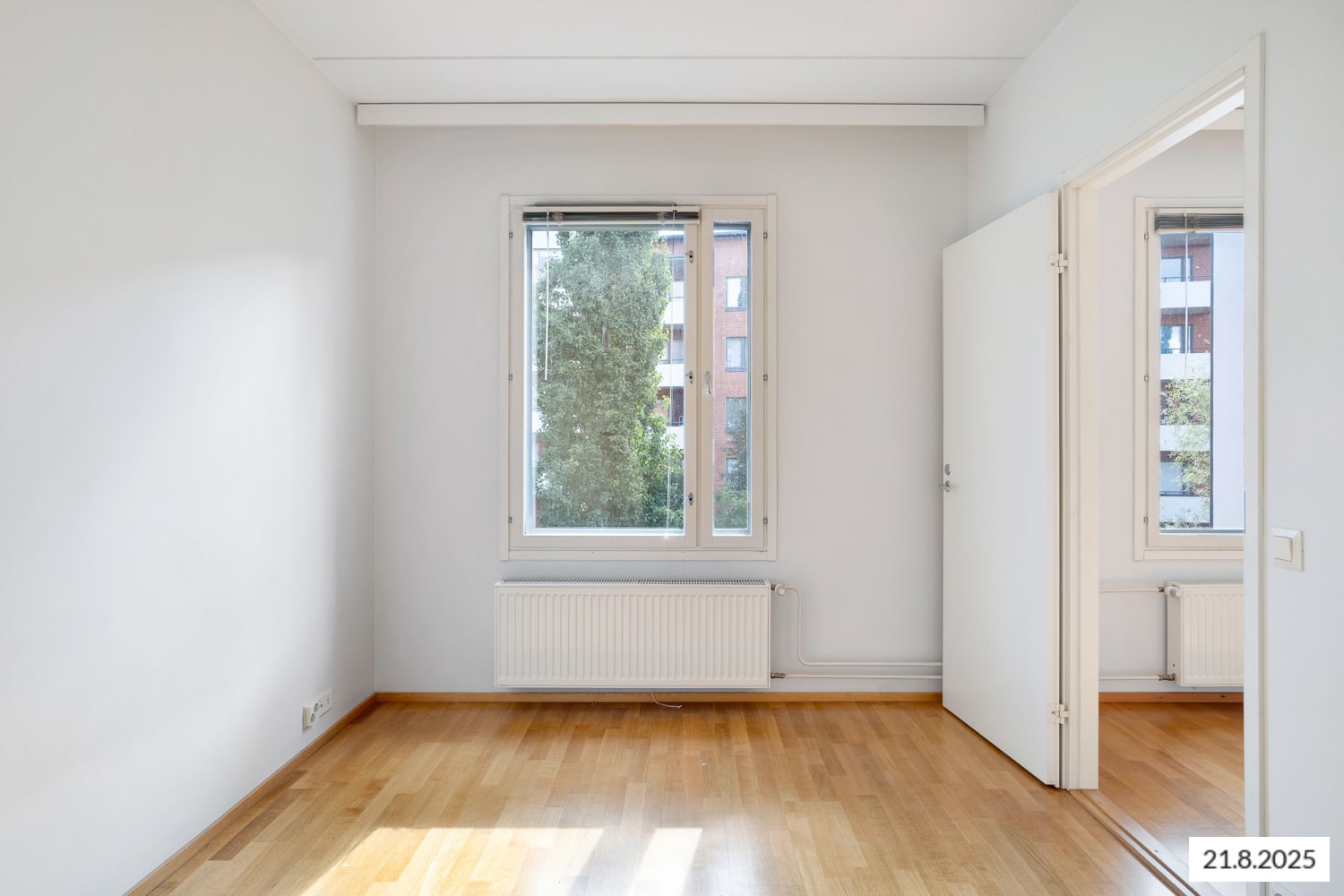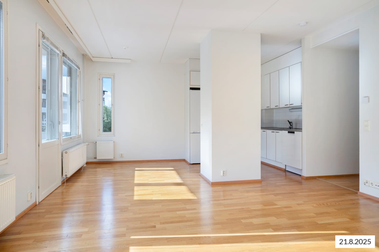 The kitchen has a dishwasher, and the washroom has a connection for the washing machine. The walls of the apartment are painted white and the floors in the living area are laminate. The windows have blinds. In the evening, you can relax and heat your own sauna.