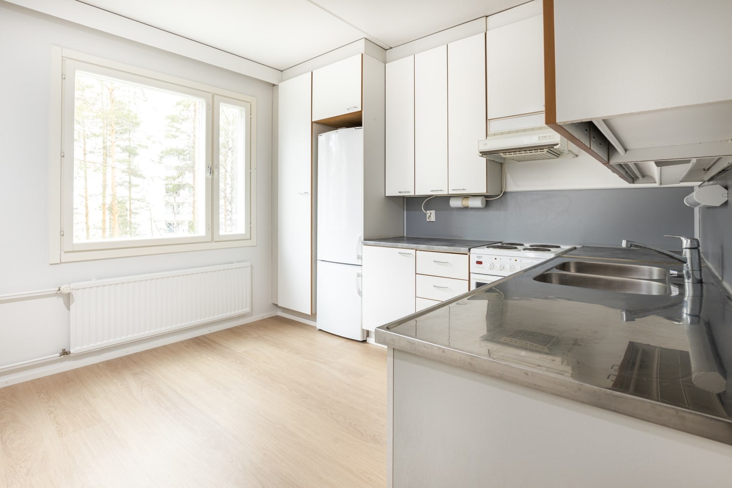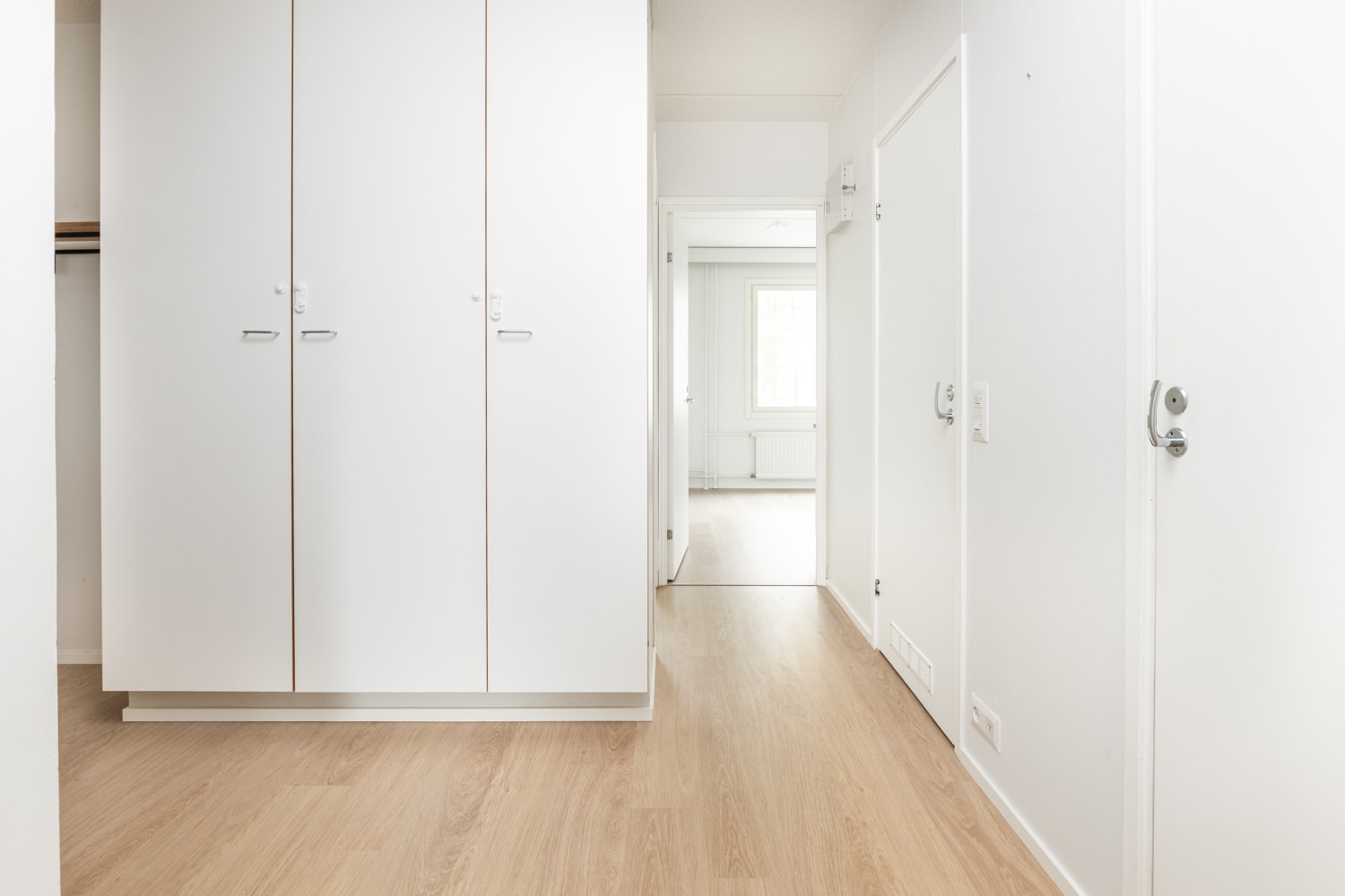This cosy one-bedroom home has been recently renovated and features a clear layout that's easy to furnish to your taste. The apartment boasts laminate flooring and a glazed balcony, perfect for creating your own summer oasis. Storage worries disappear with the wardrobe room in the hallway.
