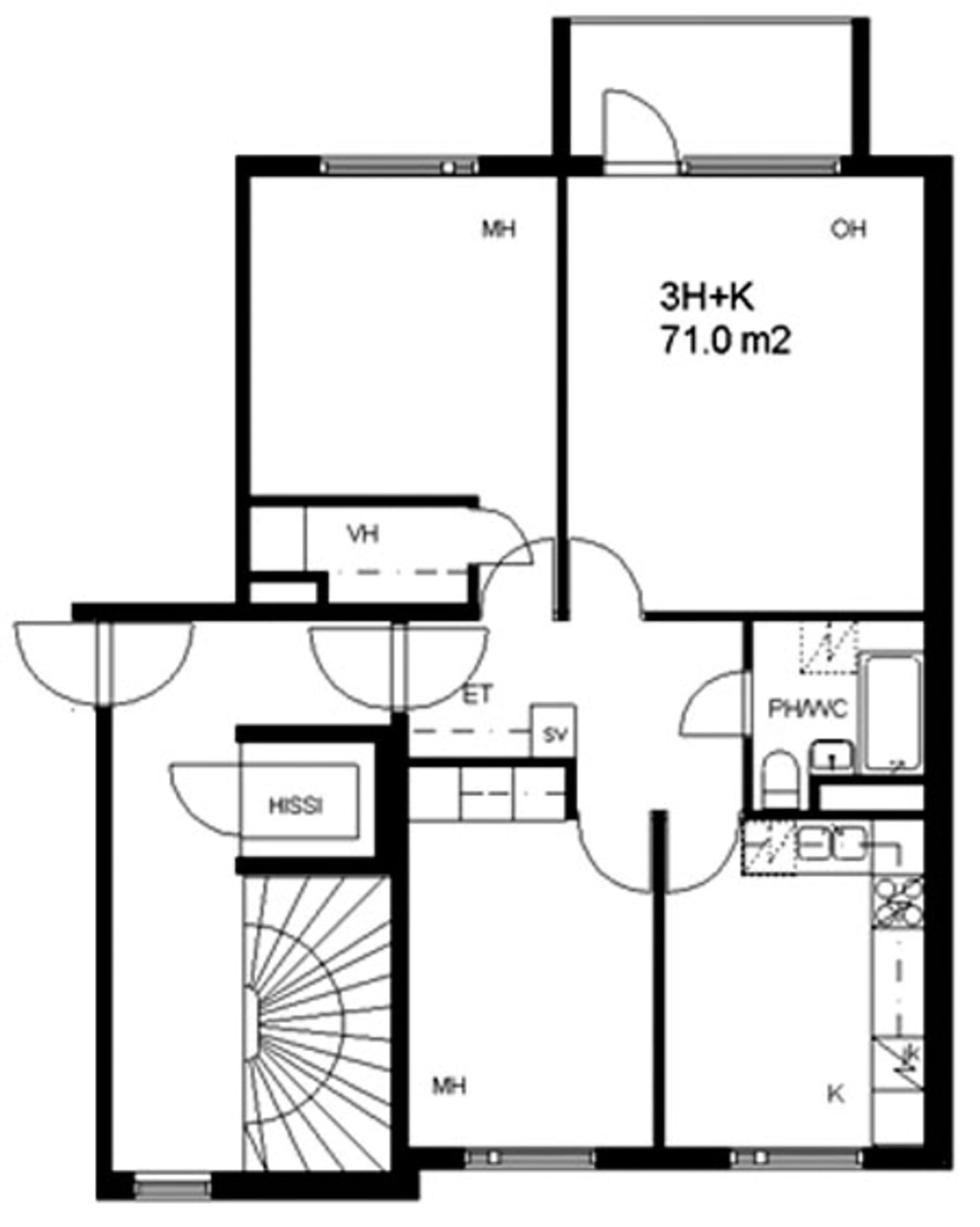 Located on a quiet street, this six-storey building with elevator has undergone a facade renovation in 2021, and each home now has a spacious glassed-in balcony. Residents can also enjoy spending time in the cozy and sheltered courtyard. There is a large parking area, as well as a car cave nearby, and the parking spaces can be inquired at the maintenance company. Sports enthusiasts will be delighted by the nearby sports venues, such as the ice hall (600 m away) and the outdoor swimming pool that was renovated in 2021 (350 m away).