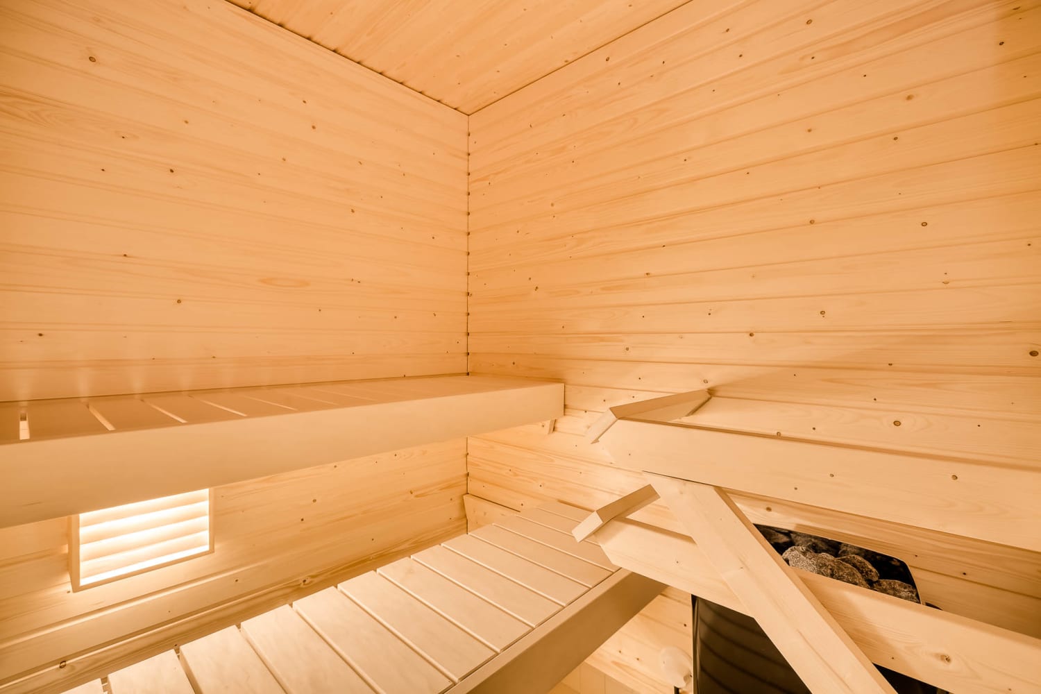 The heart of this compact rental home is the living room, which is seamlessly connected to the open-plan kitchen. A small dining table fits nicely in the kitchen area, and a peaceful sleeping space is found in the alcove. In addition to the hallway wardrobe, there is storage space in the walk-in closet. Thanks to efficient space planning, this small home also includes a private sauna, perfect for enjoying a relaxing steam.