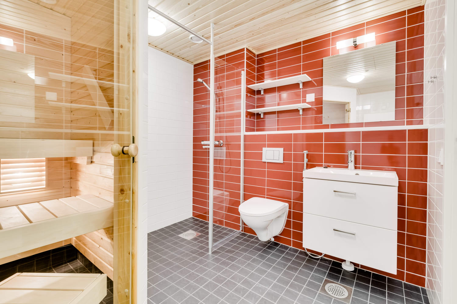 The housing company also have a house sauna and two drying rooms for drying laundry, there is a storage room for outdoor equipment. There is also a furniture storage in the basement for each apartment. The house’s sheltered courtyard is soothed for living and children’s play. Parking spaces are mainly located in the area's own parking garage.