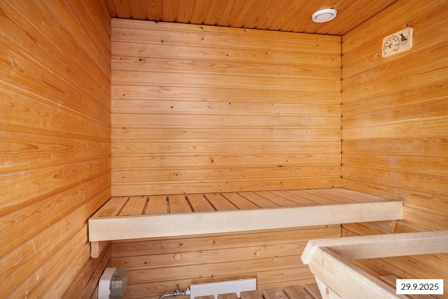 As a highlight, there is your very own sauna where you can relax and unwind. The bathroom has space and connections for a washing machine. The home's light-coloured materials serve as a neutral base for any interior style.