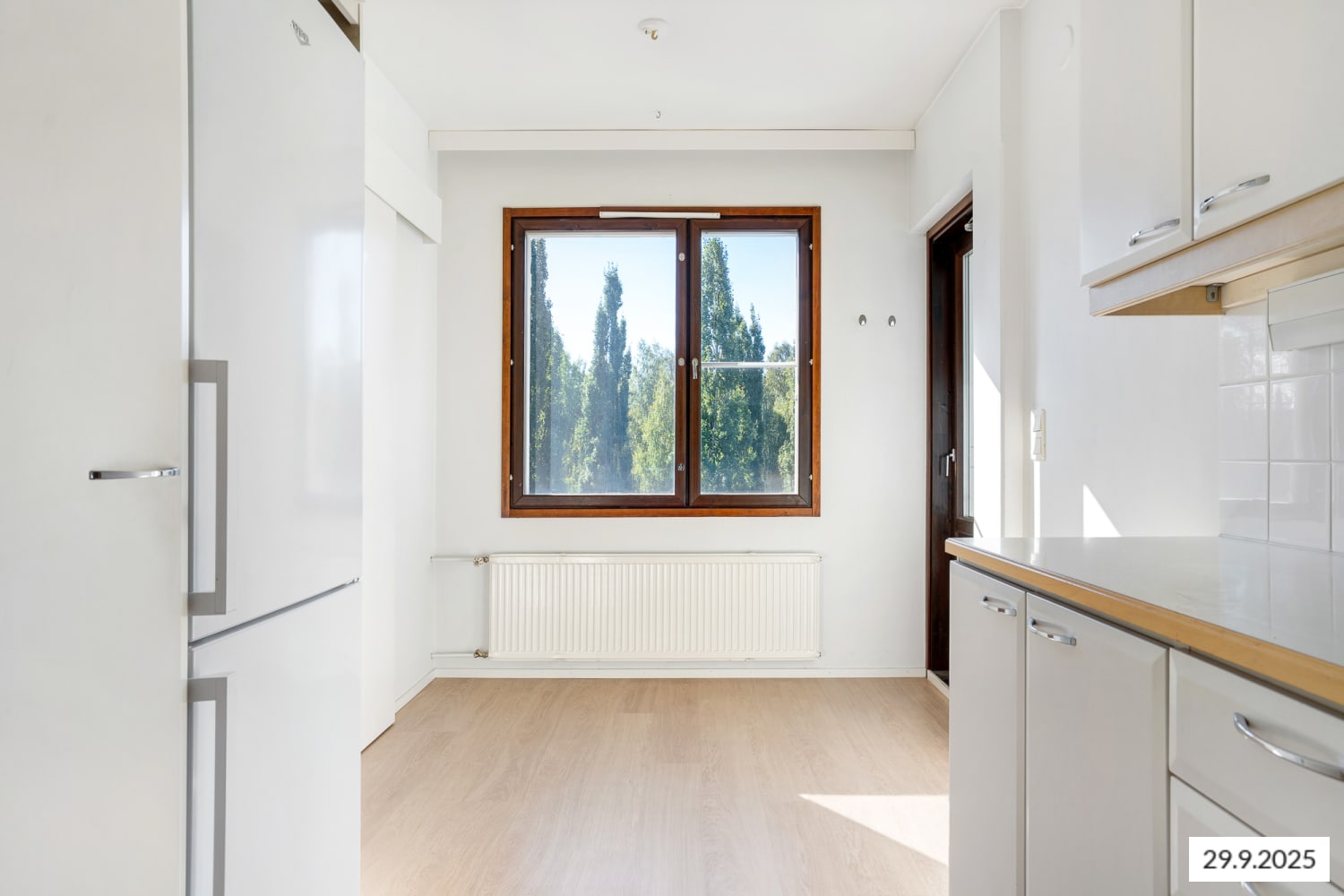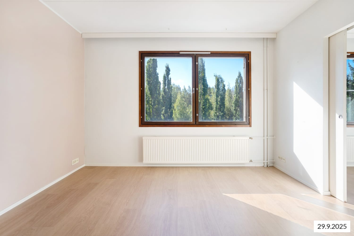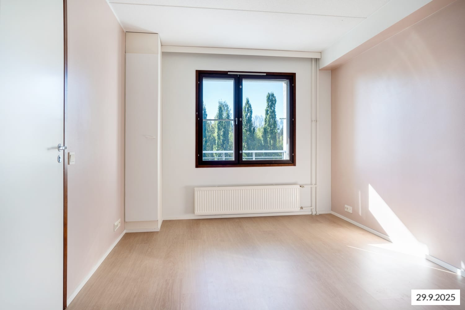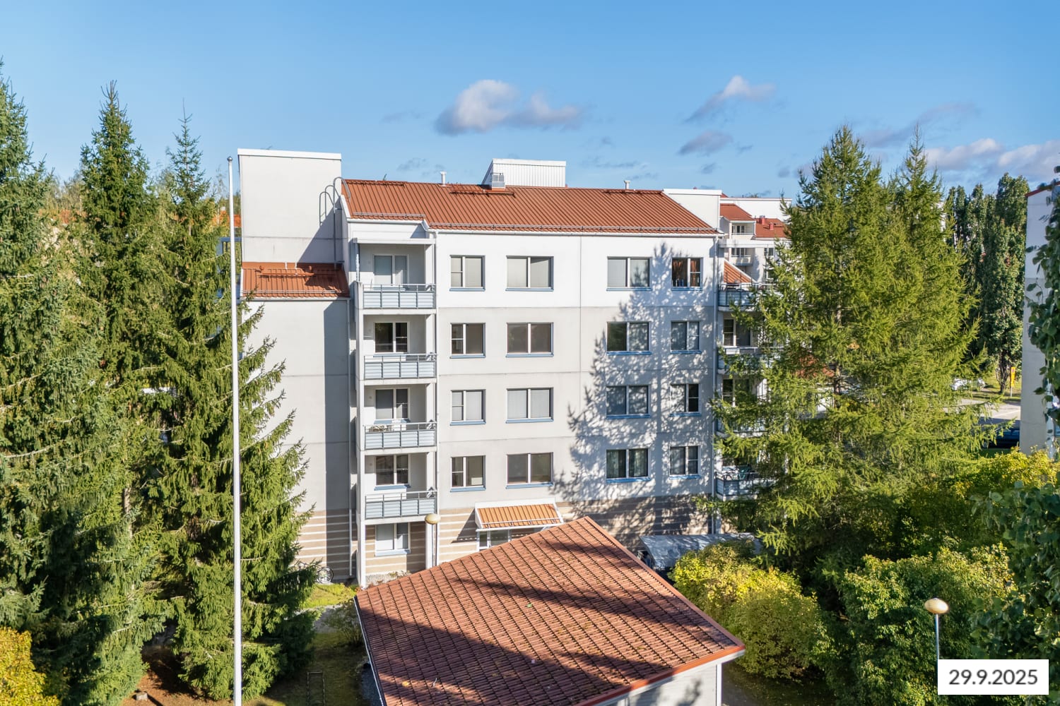 The one-bedroom home with neat kitchen surfaces and a beautiful laminate floor features a generously sized living room, a kitchen separated from the living room by a partition wall, and a bright bedroom. The clear layout offers several options to decorate the home to your liking. In summer, you can extend your living space to your own balcony. There are plenty of cupboards both in the hallway and the bedroom.