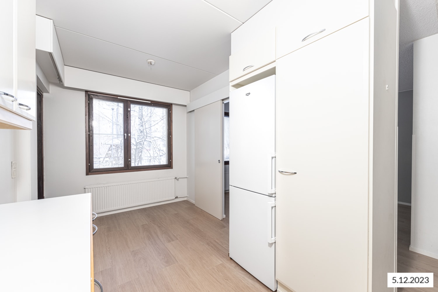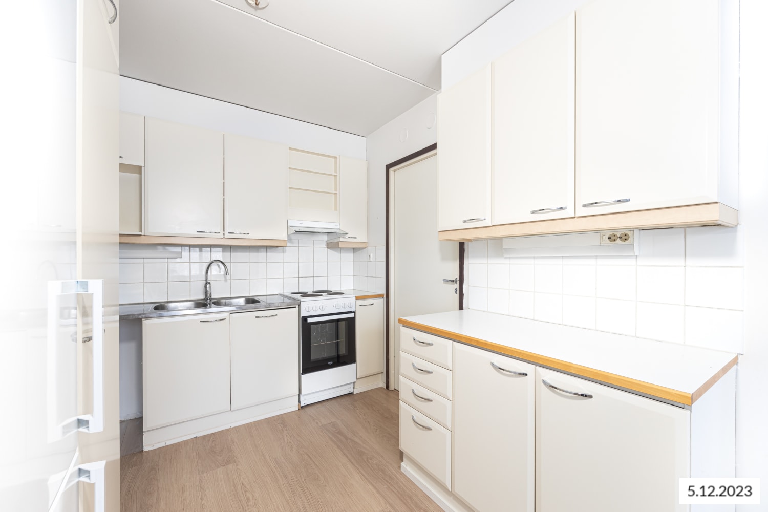 Built in 1994, these two apartment buildings feature a total of 50 rental homes, each with its own sauna. This generously sized 1-bedroom apartment on the second floor is versatile and suits various life situations. The living room includes an alcove, which can easily be used as an additional sleeping area. The kitchen is slightly separate from the living room and has space for a dining table. From the dining area, you can access the balcony. Your own sauna adds a touch of comfort, and a separate guest toilet makes daily life even smoother.