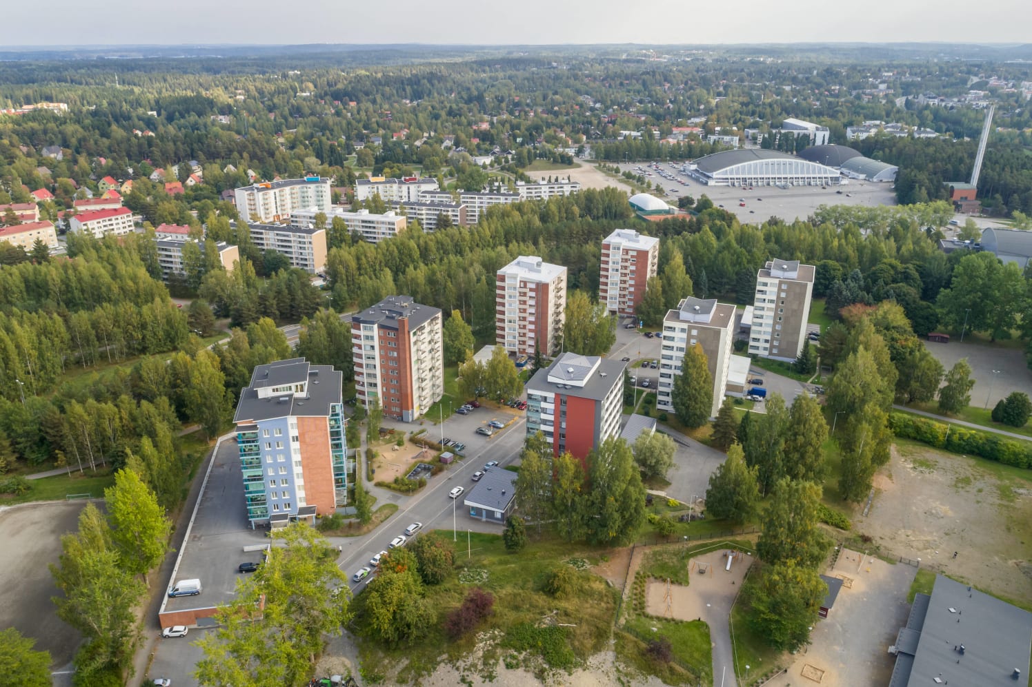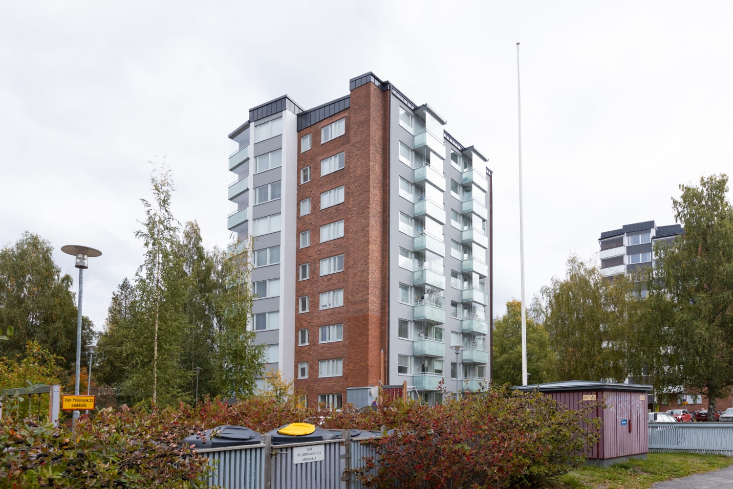 This nine floor building with a lift is located in the popular Kaleva area. The building was completed in 1964 and refurbished in 2001. The efficient, small two-bedroom homes are ideal four couples and small families. In 2021-22 the building was remodeled and glass balconies were added also the lift was renewed.