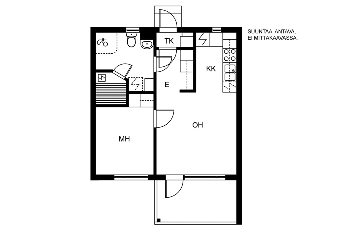 This pleasant low-rise balcony-access apartment building is located at the end of Kaiturinkatu street with no through traffic. The building has spacious homes with light decor schemes from one-bedrooms to large family homes. The kitchens have light-coloured units and worktops and are equipped with a fridge-freezer, cooker, extractor fan and hookups for a dishwasher. There is space for a washing machine in the bathrooms. The ground floor homes have a leafy patio and the above-ground ones a spacious balcony. All apartments have a private sauna.