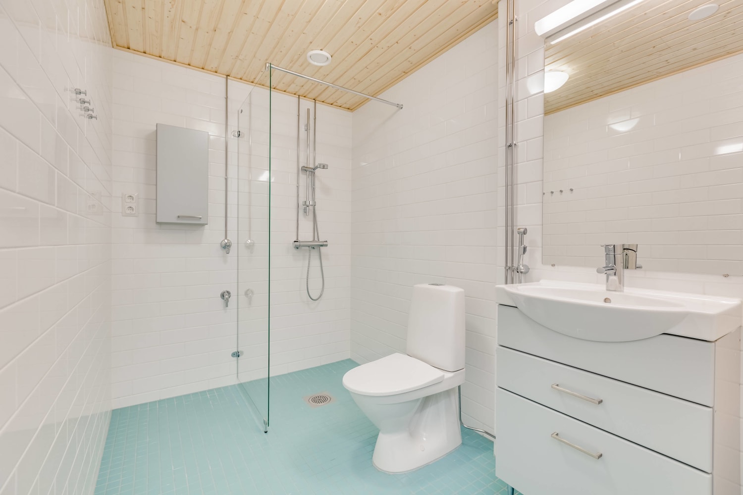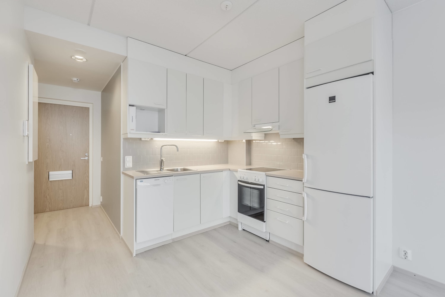 The homes have high-quality materials, fixtures and fittings, laminate flooring and fully tiled bathrooms. The colour selections are based on two different design schemes. The kitchens feature ceramic cookers, dishwashers and cold appliances. All appliances are white. Kitchen worktops are made of laminate. There is space in the bathrooms for a washing machine and dryer. The water fees will switch over to water consumption-based billing on 1 December 2024.