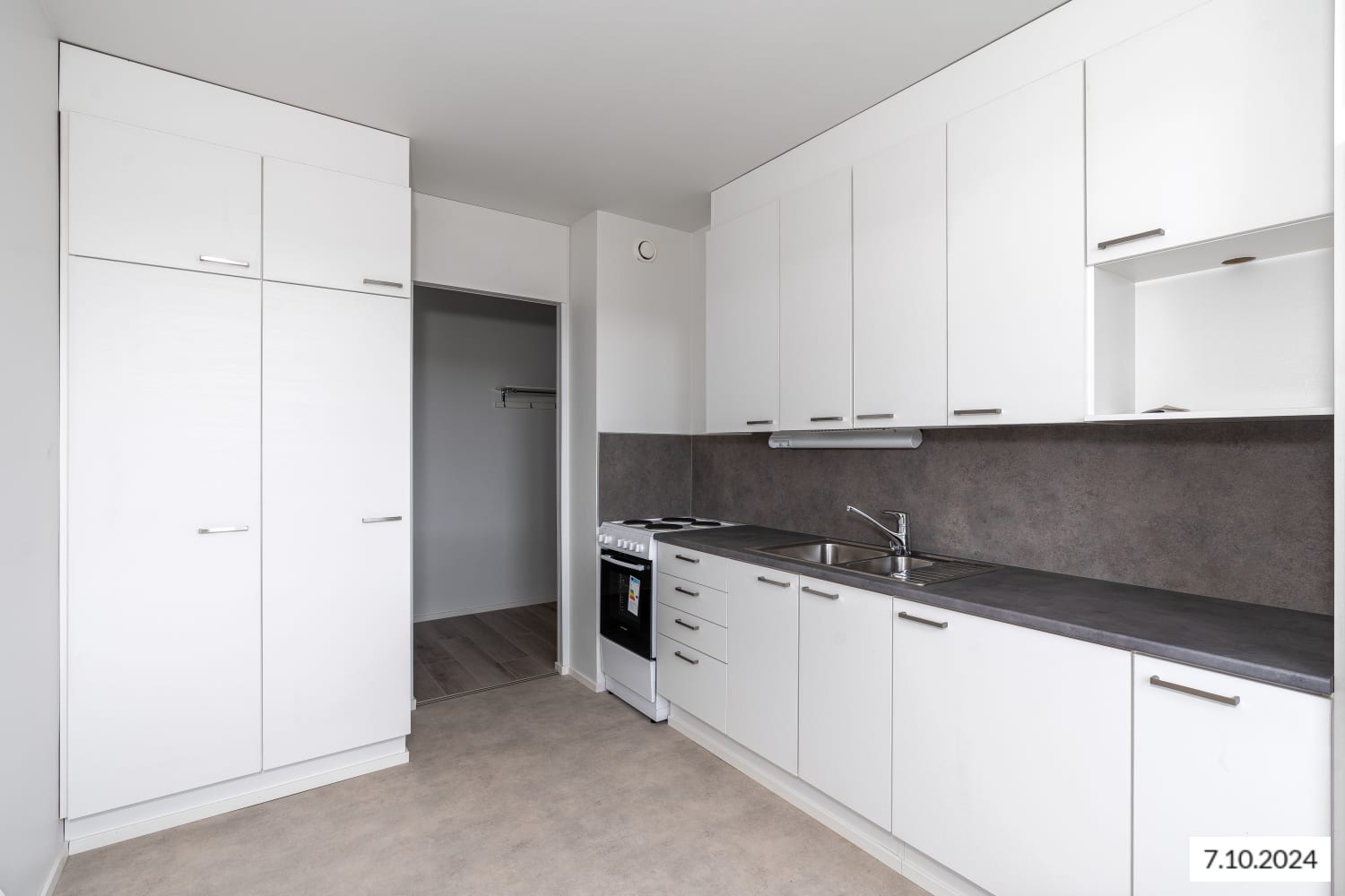 The kitchen is equipped with a traditional stove, a freezer-refrigerator and has ample space for a dining table. The bathroom has been renovated and includes a spot for a washing machine. A separate small WC adds convenience to everyday life.
