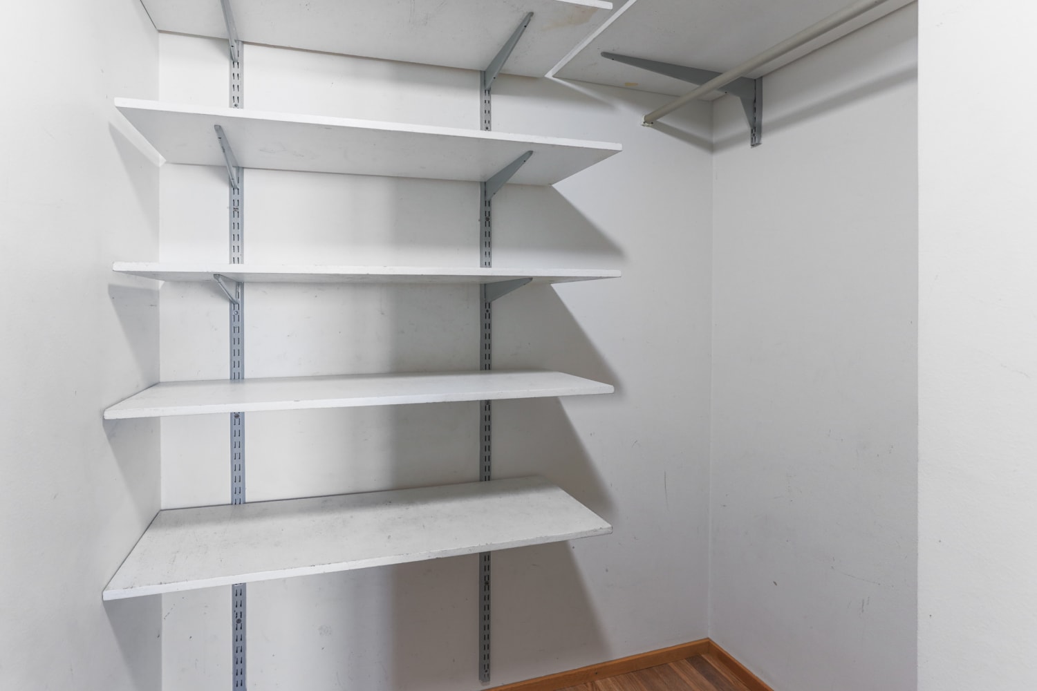 The kitchen is equipped with a ceramic hob and dishwasher, making cooking a breeze. With two walk-in closets, there's ample storage space, and the bathroom has a space and connection for a washing machine.