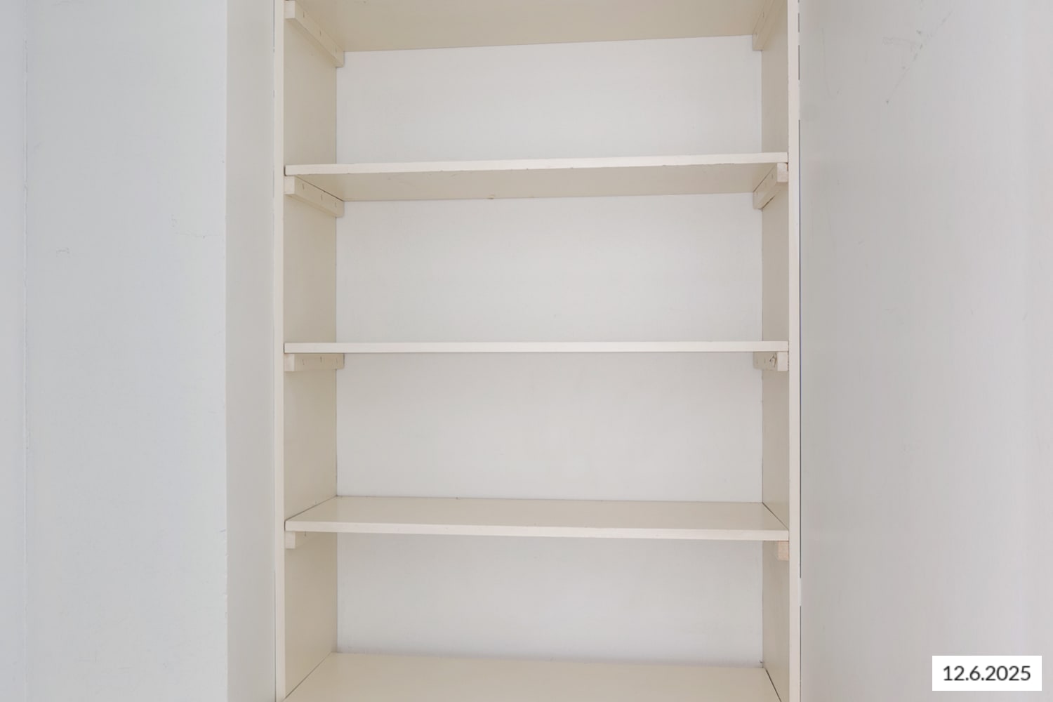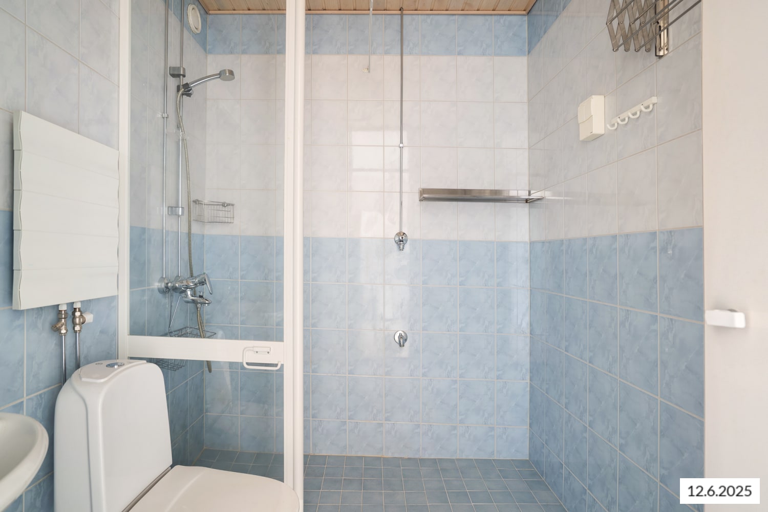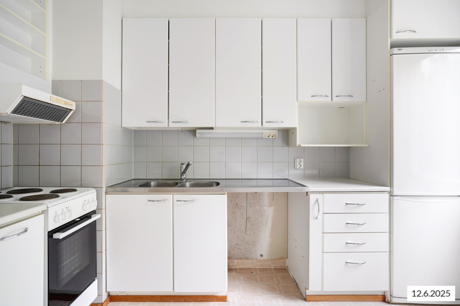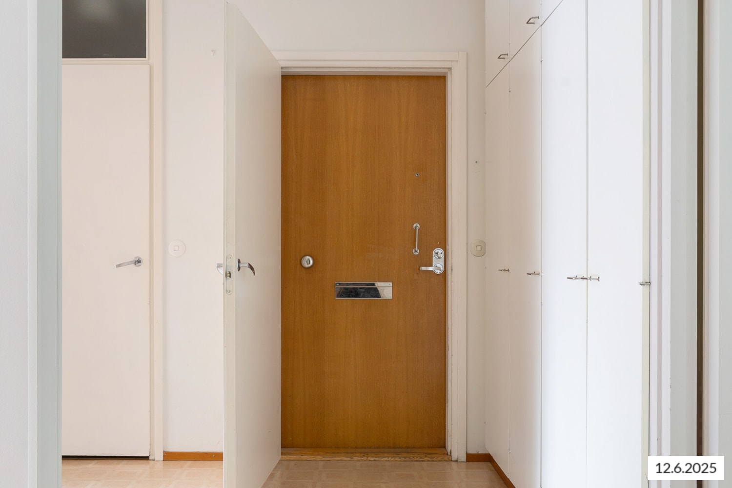 The layout of the spacious two-bedroom home is traditionally functional: you can access the balcony from the living room. There is ample storage space in the wardrobe located next to the entrance hall. In this through-apartment, there is a separate kitchen where you can fit a dining table by the window. The kitchen also has space for your dishwasher, and the bathroom accommodates a washing machine.