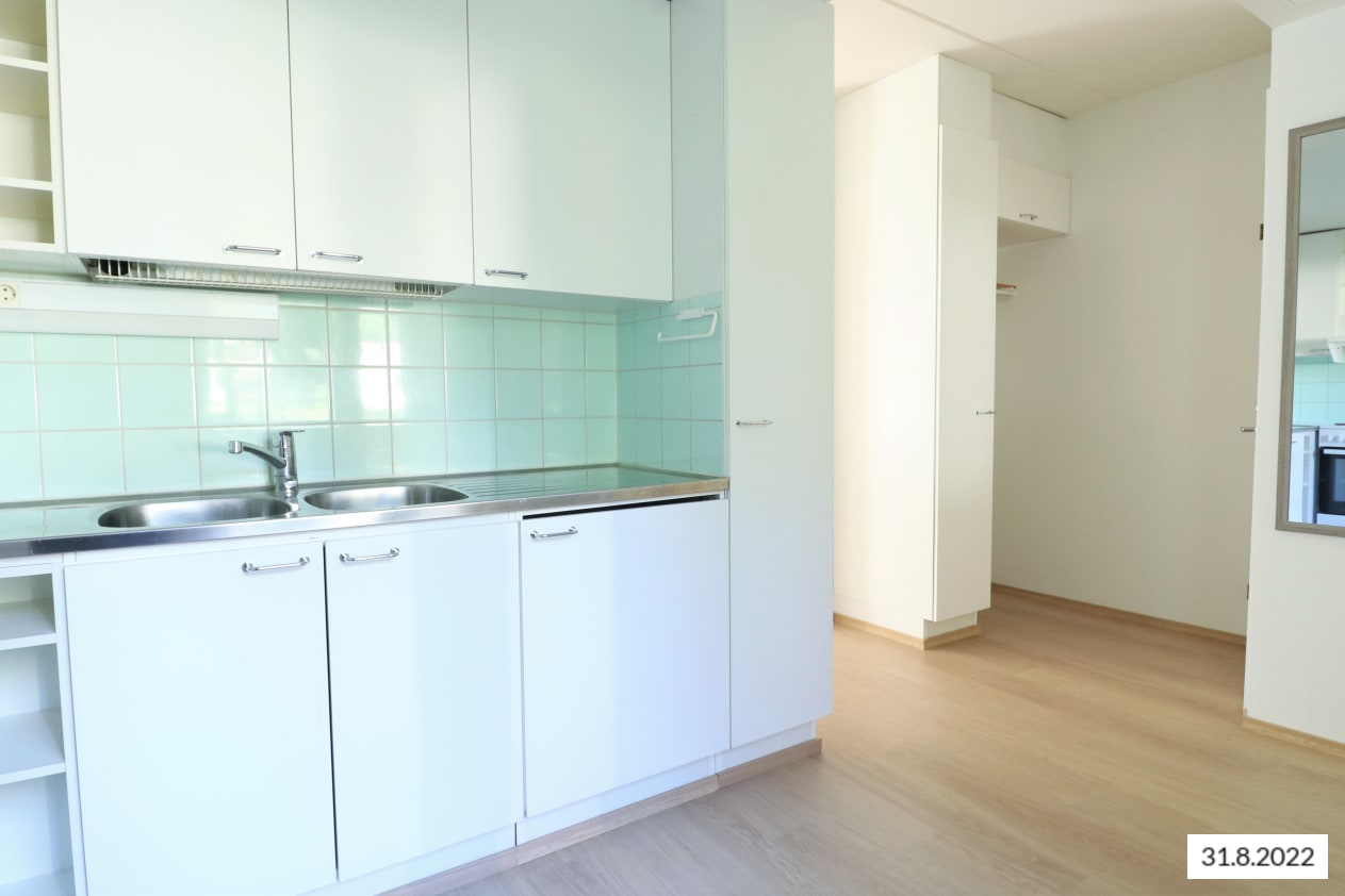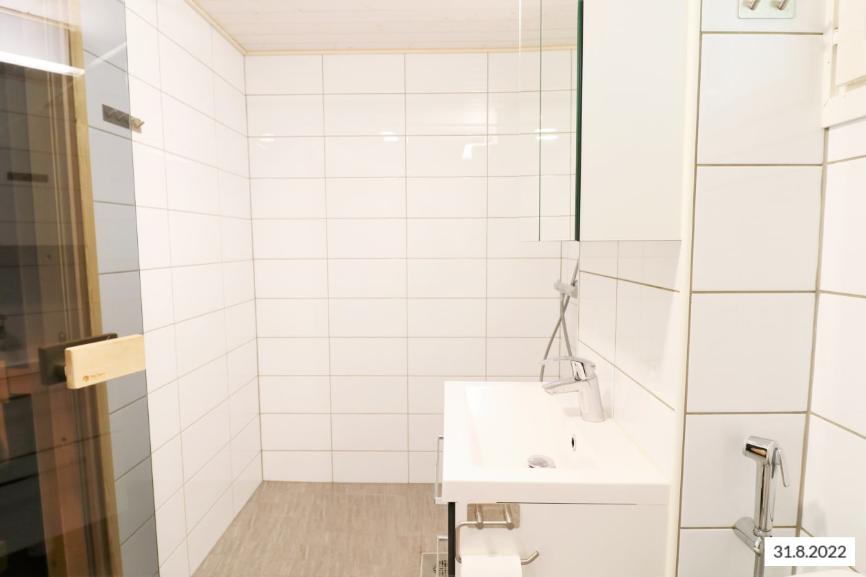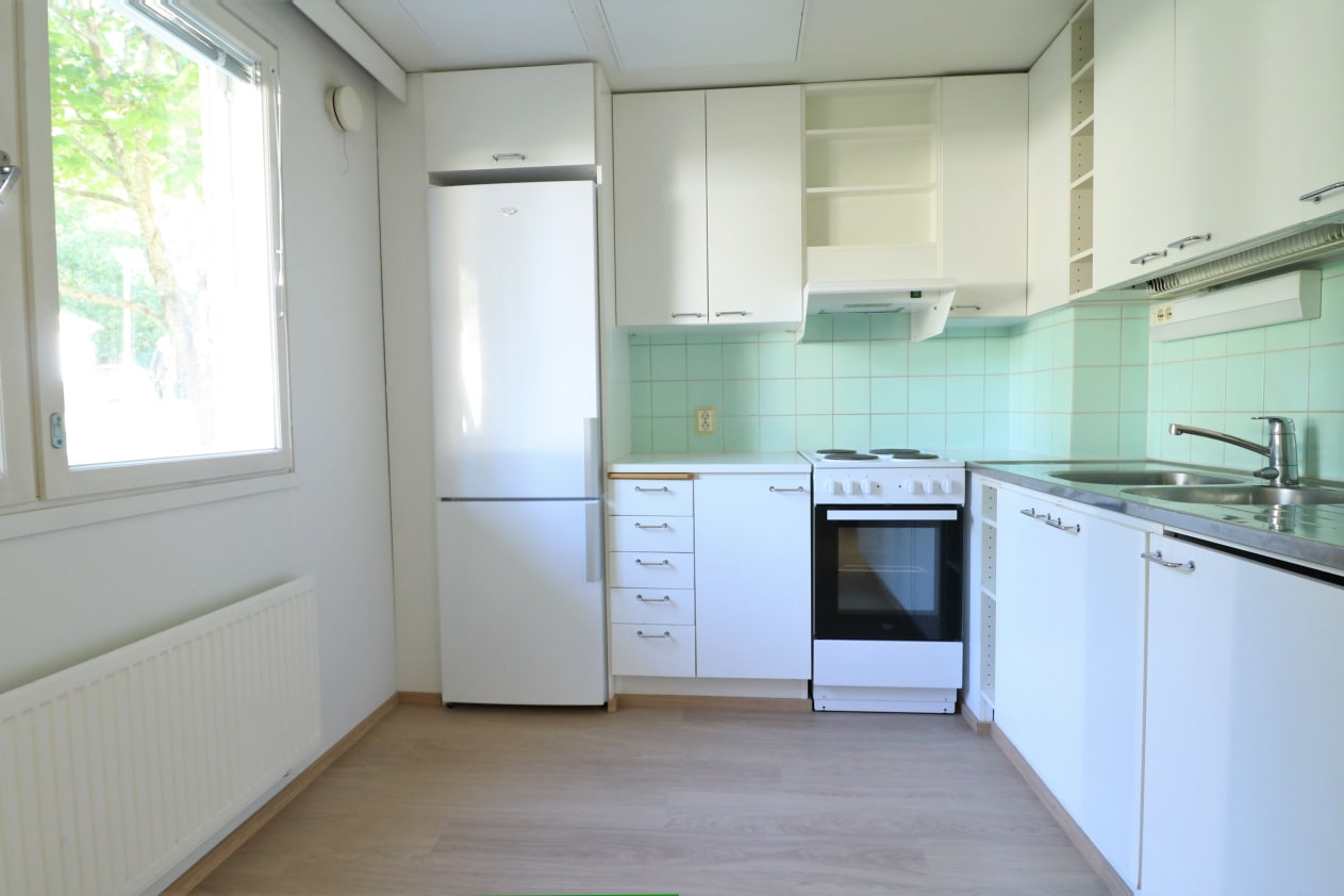 This pleasant low-rise balcony-access apartment building is located in Marmorikatu street next to Piispanristi in a neighbourhood of detached and terraced homes. The property features comfortable rental homes with a light decor scheme. All apartments have one bedroom and a private sauna. The upper-floor apartments have a balcony and the ground floor ones a private garden area. The kitchens have light-coloured units and are equipped with a fridge-freezer, cooker, extractor fan and hookups for a dishwasher. There is space for a washing machine in the bathrooms.