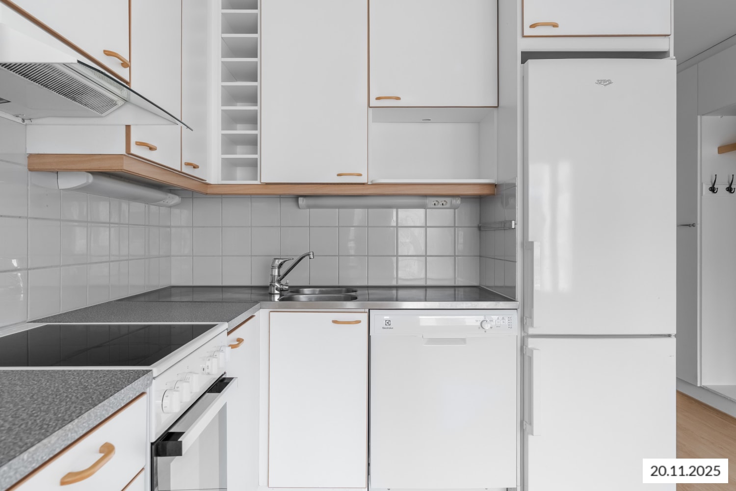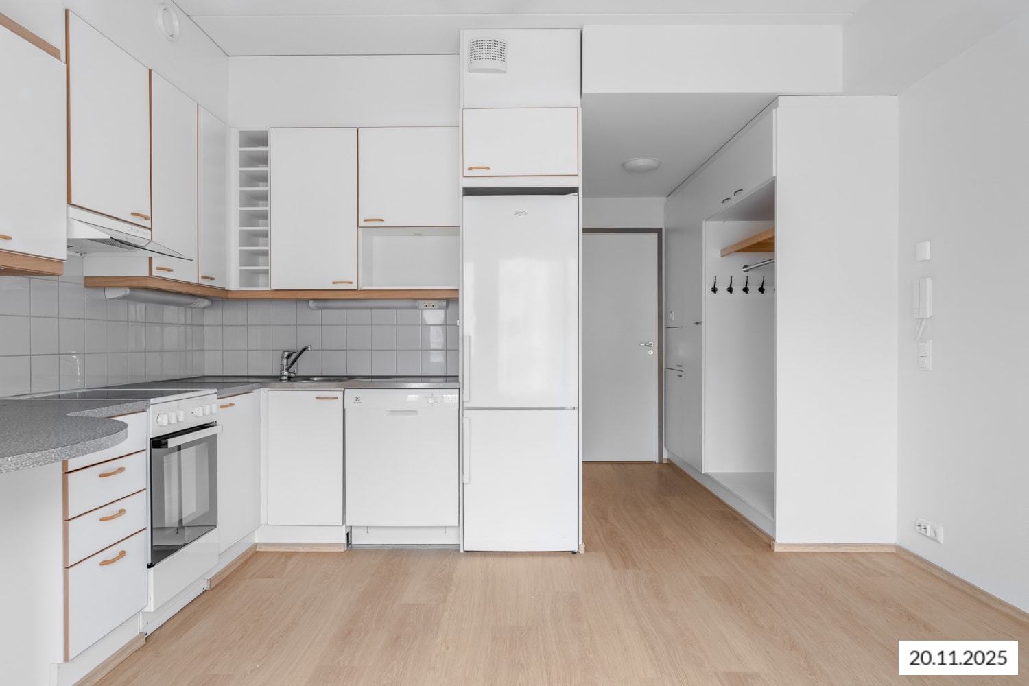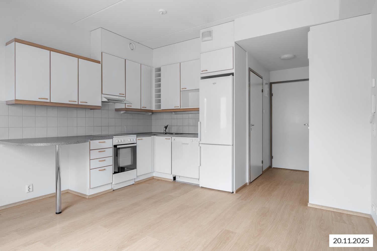 The kitchen is equipped with a ceramic hob and a refrigerator. There is space for your dishwasher, making the home cooking tasks effortless. The bathroom includes connections for a washing machine.