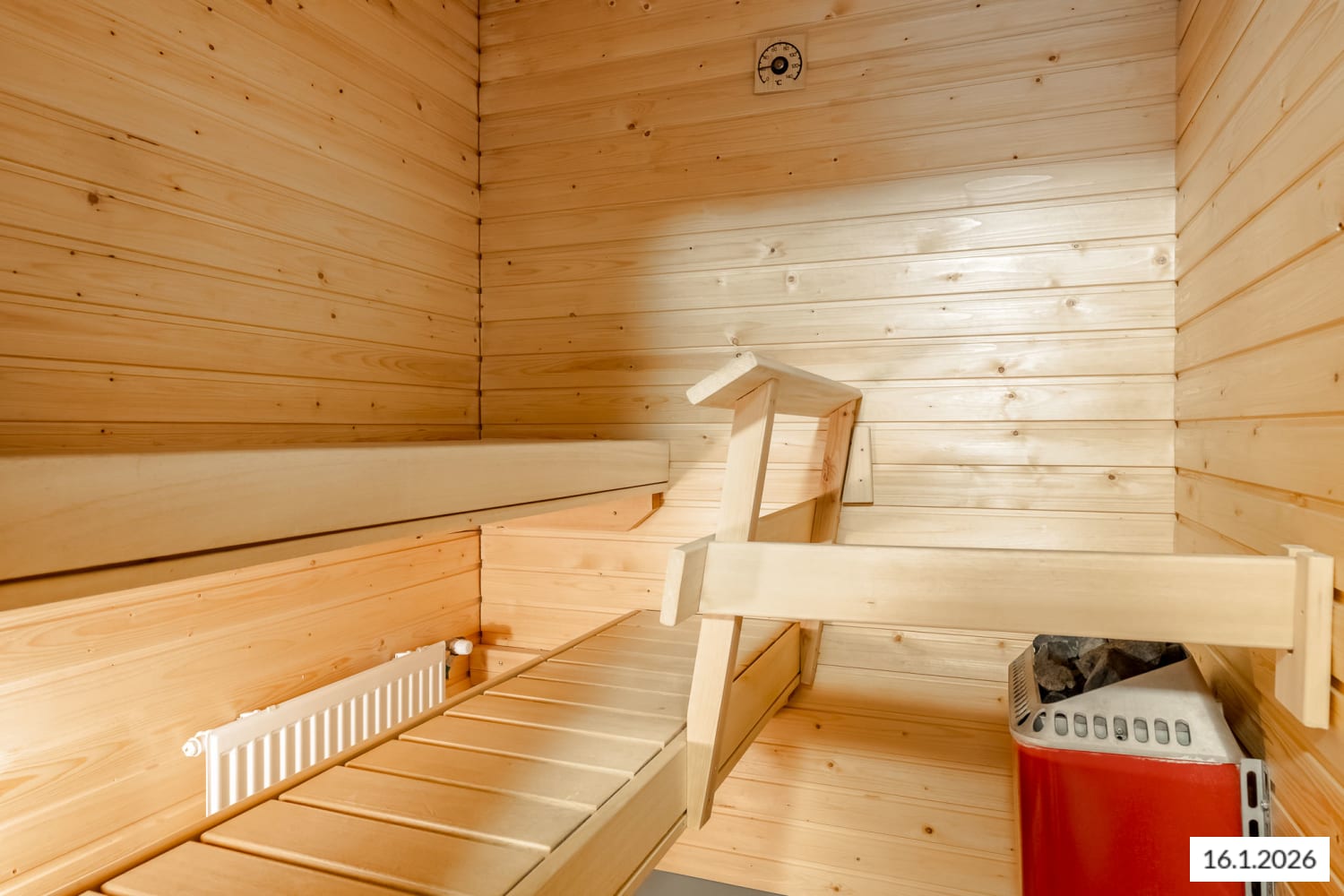 Built in 2002, this one-bedroom home is cosy and bright. The apartment features a private sauna where you can unwind after a busy day. After enjoying the steam, it's pleasant to cool off on the glazed balcony, which serves as an extra room in the summer.