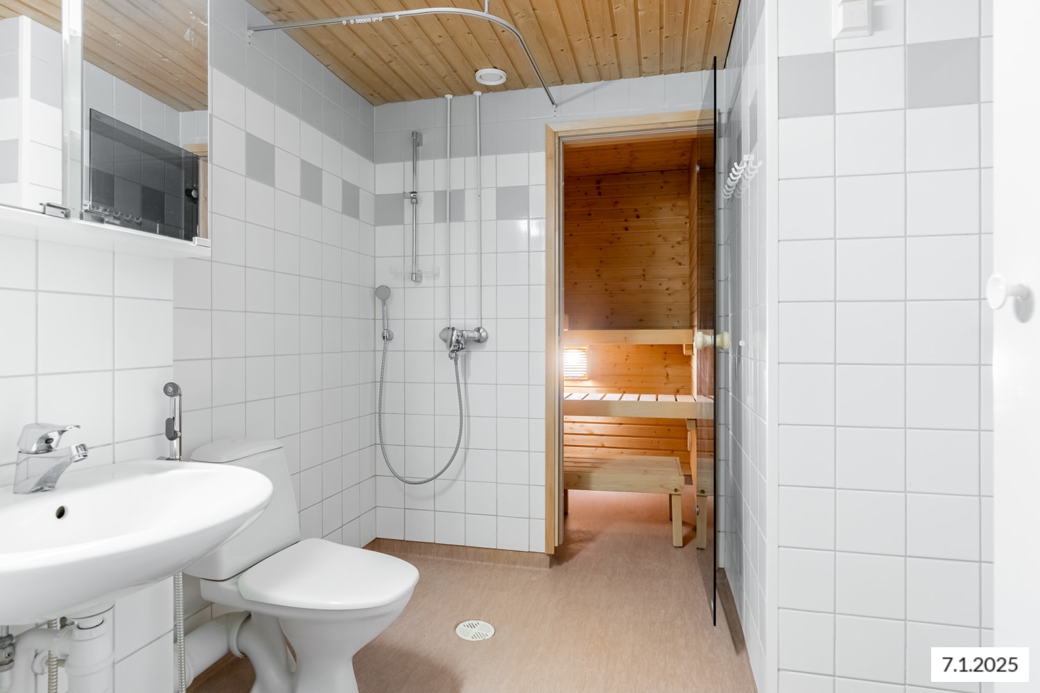 This cosy rental home features a private sauna where you can unwind after a busy day. After enjoying the sauna, relax on the glazed balcony. The peaceful home is nestled in nature, yet conveniently close to various amenities.