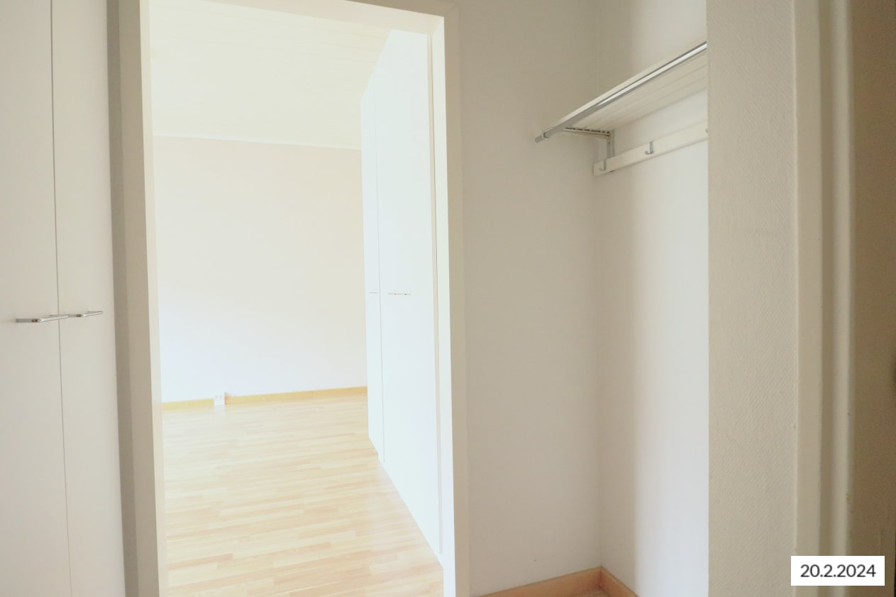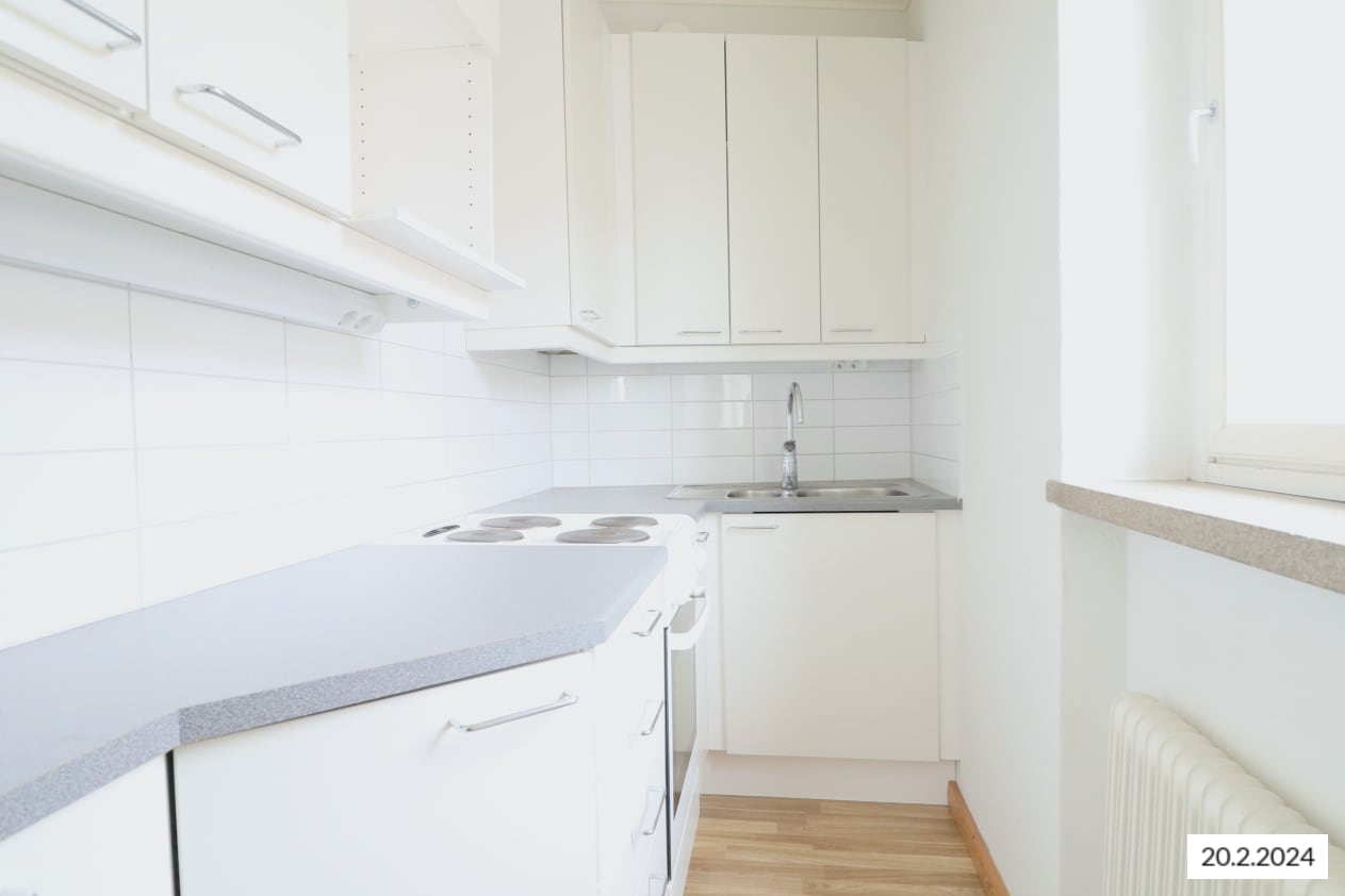 This bright, compact home features a cosy and spacious living room where you can enjoy the elevated location and peaceful views towards the northeast, overlooking the play area. The charming atmosphere of the apartment is created by its clear layout and beautiful oak laminate flooring.