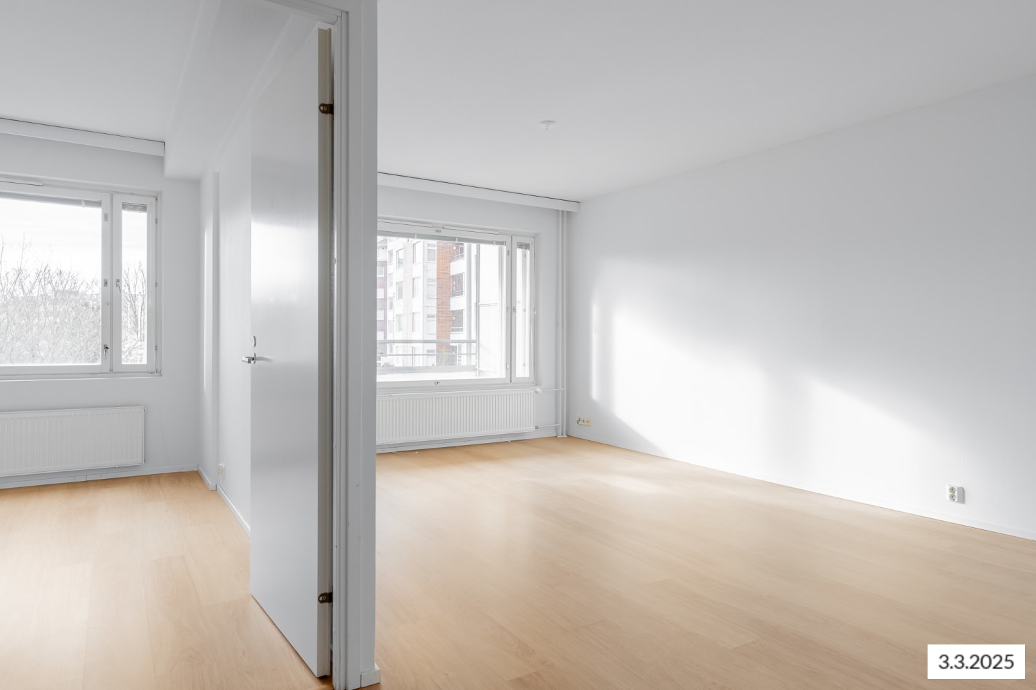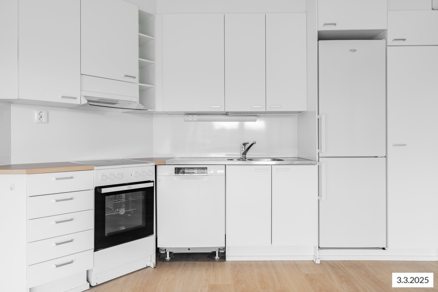 This cosy home with an open-plan kitchen is ready for its new resident. The spacious apartment close to Tervatori features a balcony accessible from the living area and a separate bedroom next to the kitchen. The large bathroom includes space for a washing machine, and the private sauna adds a touch of everyday luxury. There is convenient wardrobe space in the bedroom.