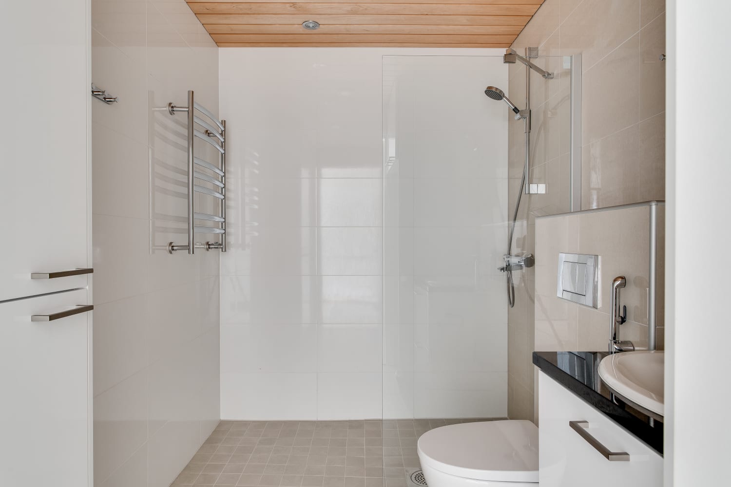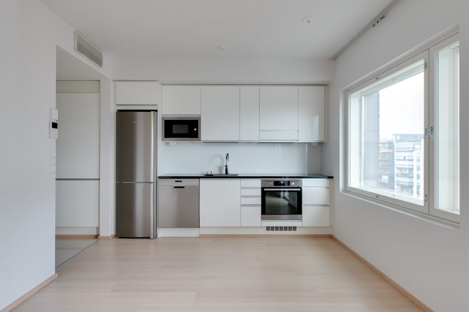 SATO rents out nine attractive little homes at this building consisting mostly of owner-occupied homes. Every apartment has a French or glassed-in balcony. All rental homes feature parquet floors, tiled bathrooms and wet underfloor heating. Standard equipment in the kitchenettes includes a fridge-freezer, ceramic cooktop with integrated oven, microwave and dishwasher. The bathrooms have space for a washing machine and dryer. In need of a parking space? Inquire with us also about a parking space in the underground parking facility located beneath the block.