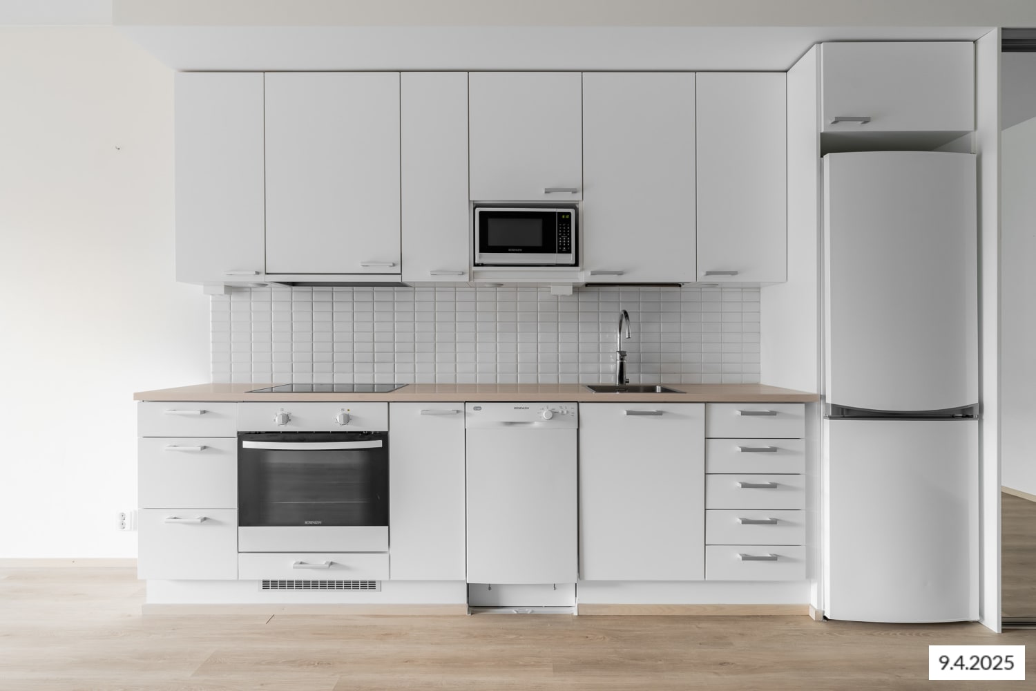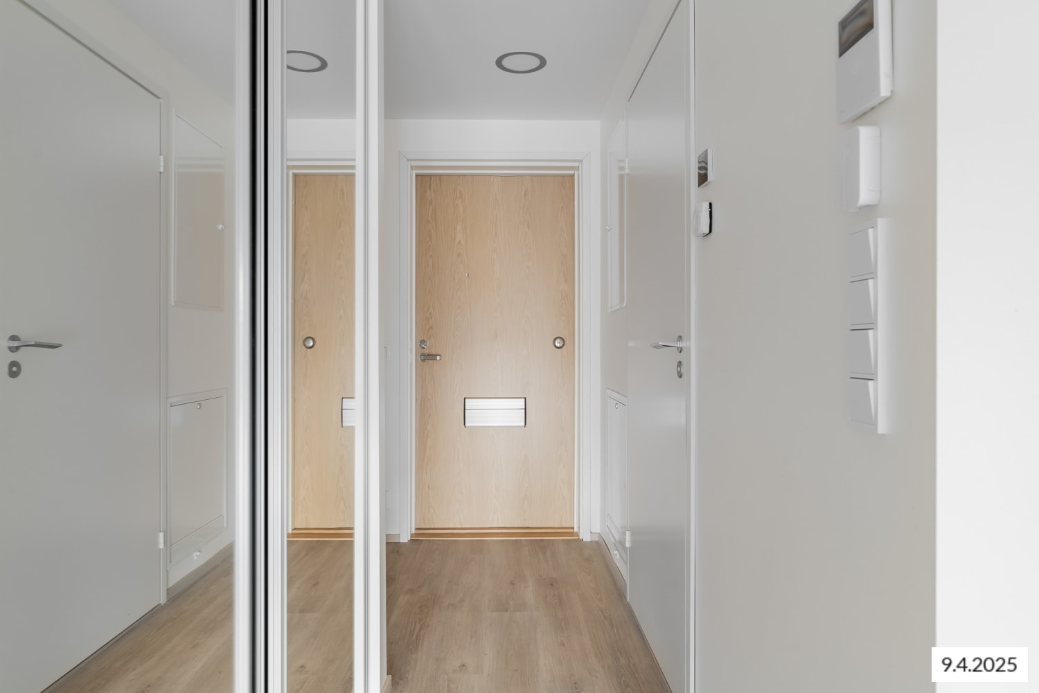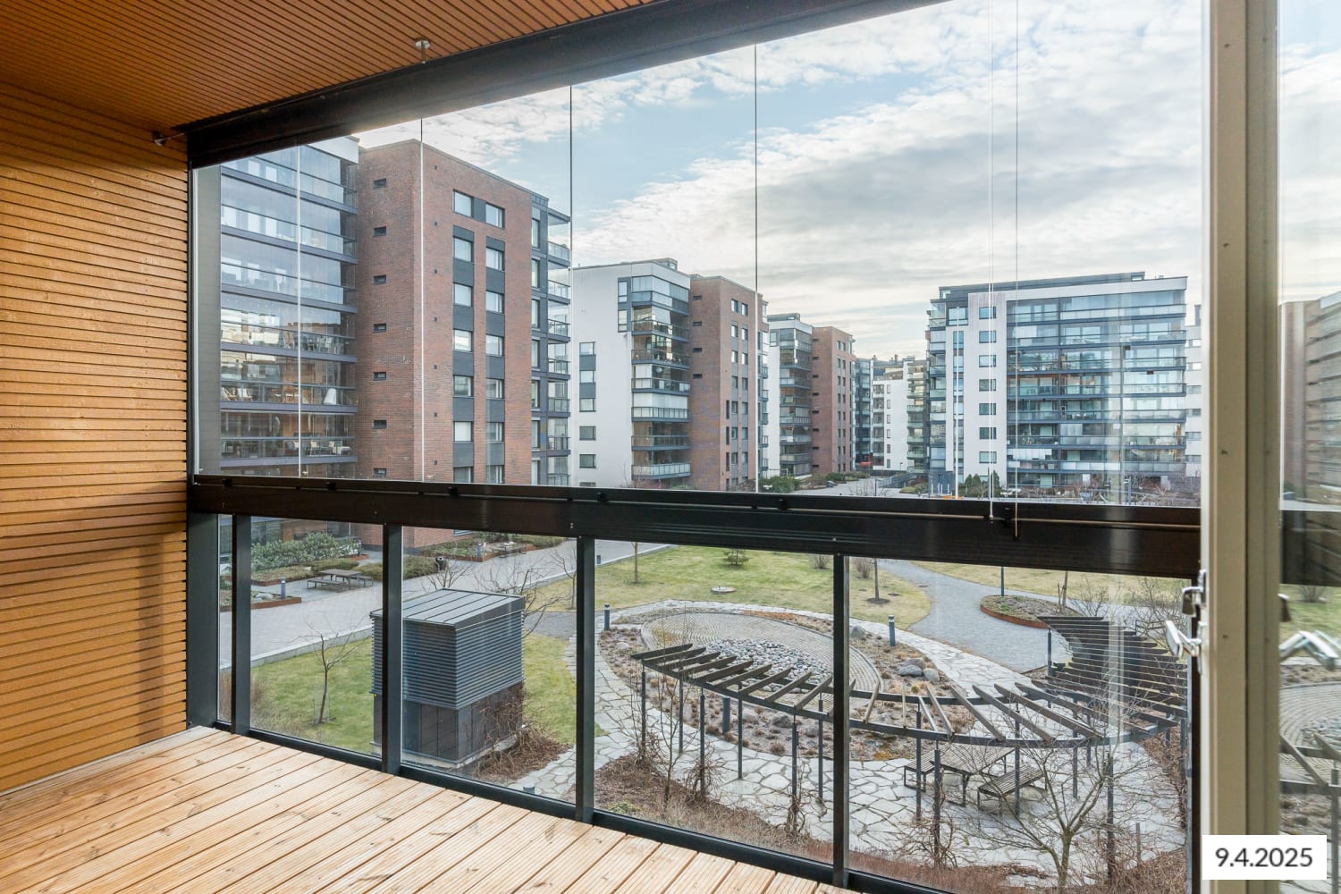 The handsome eight-storey building standing at the edge of the Kupittaanpuisto block contains studios and one-bedroom apartments as well as a fantastic penthouse apartment. These homes have smart layouts and kitchen areas opening to the living room, which create living areas that have a spacious feel and are flooded with light from floor-to-ceiling windows. Every apartment has a good-sized glassed-in balcony.