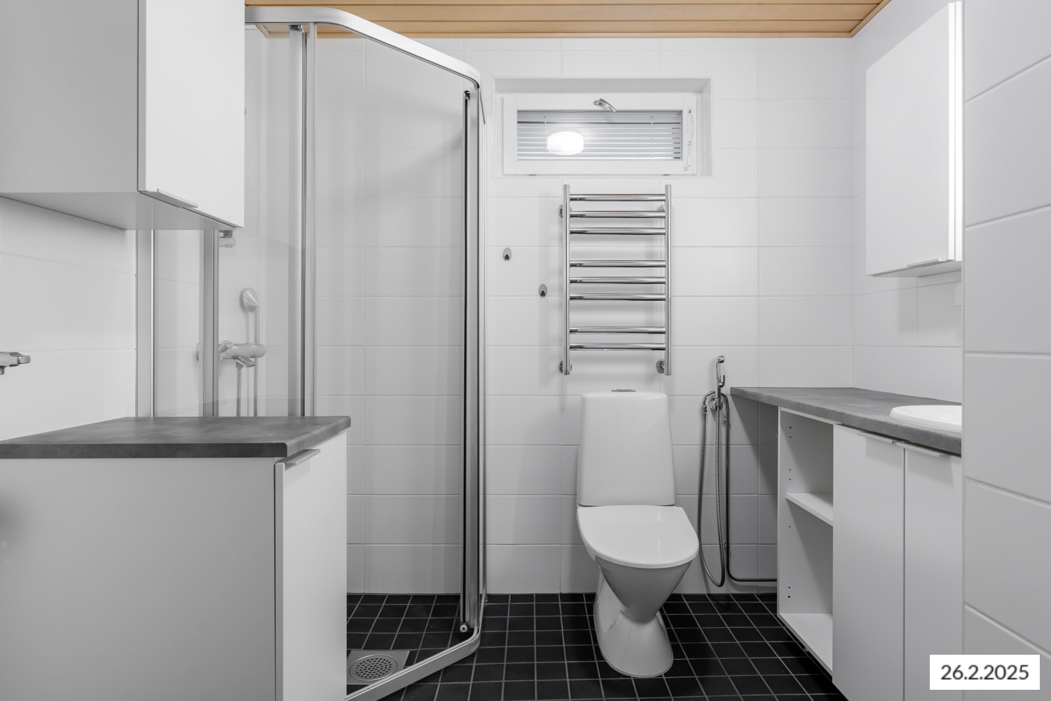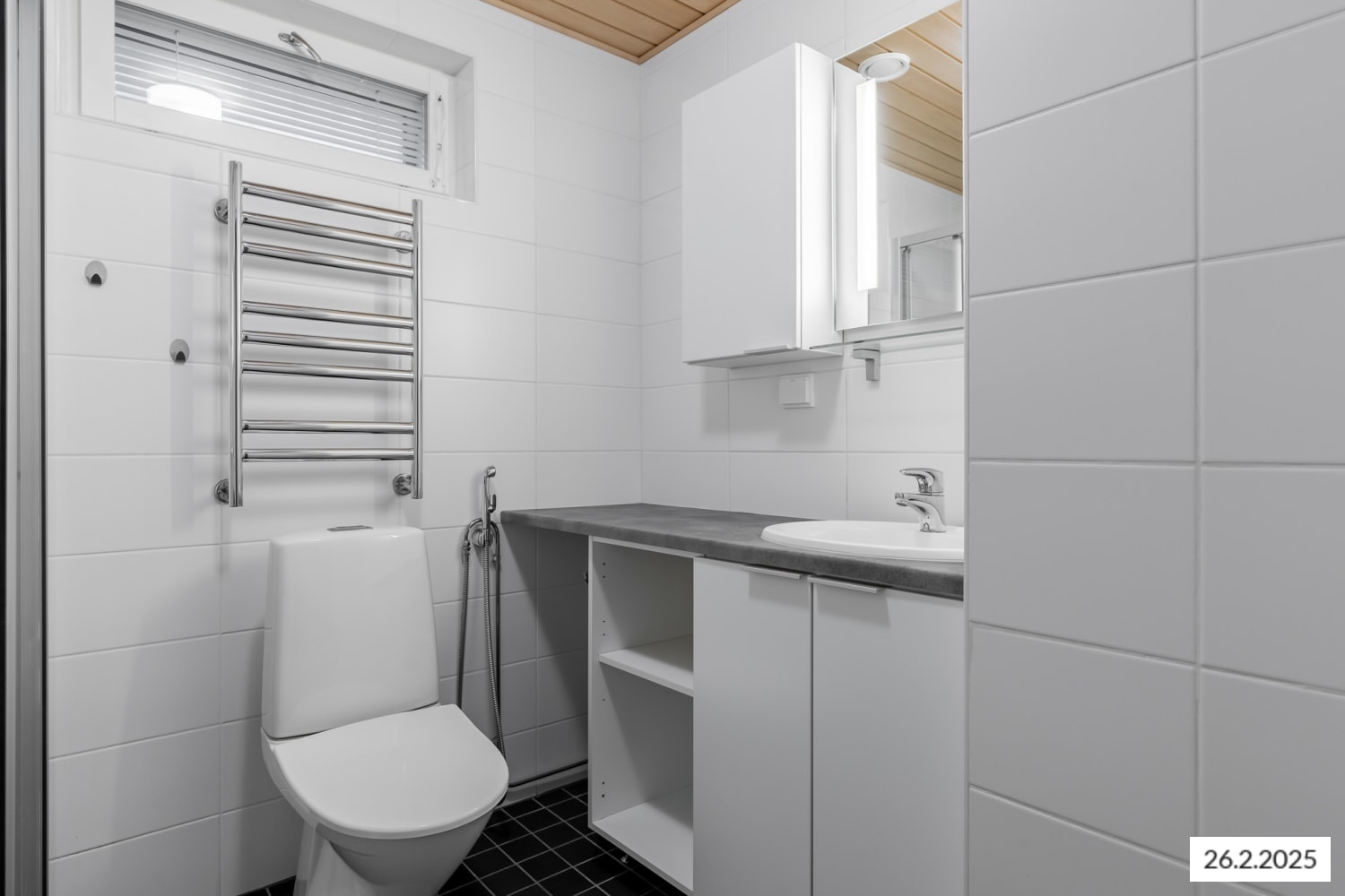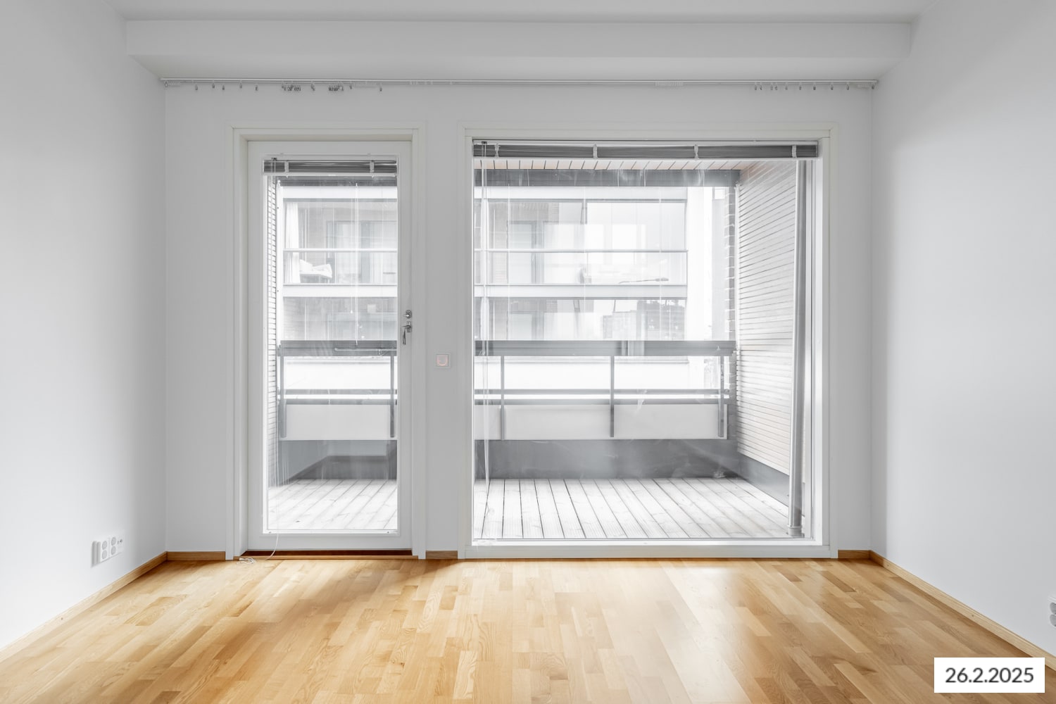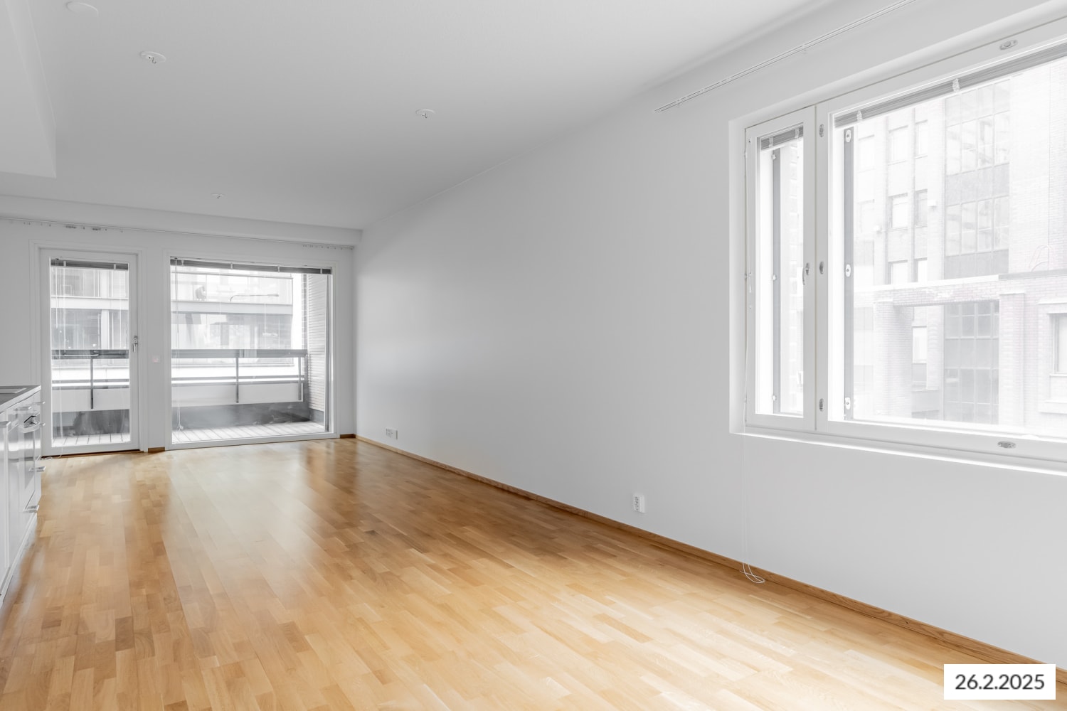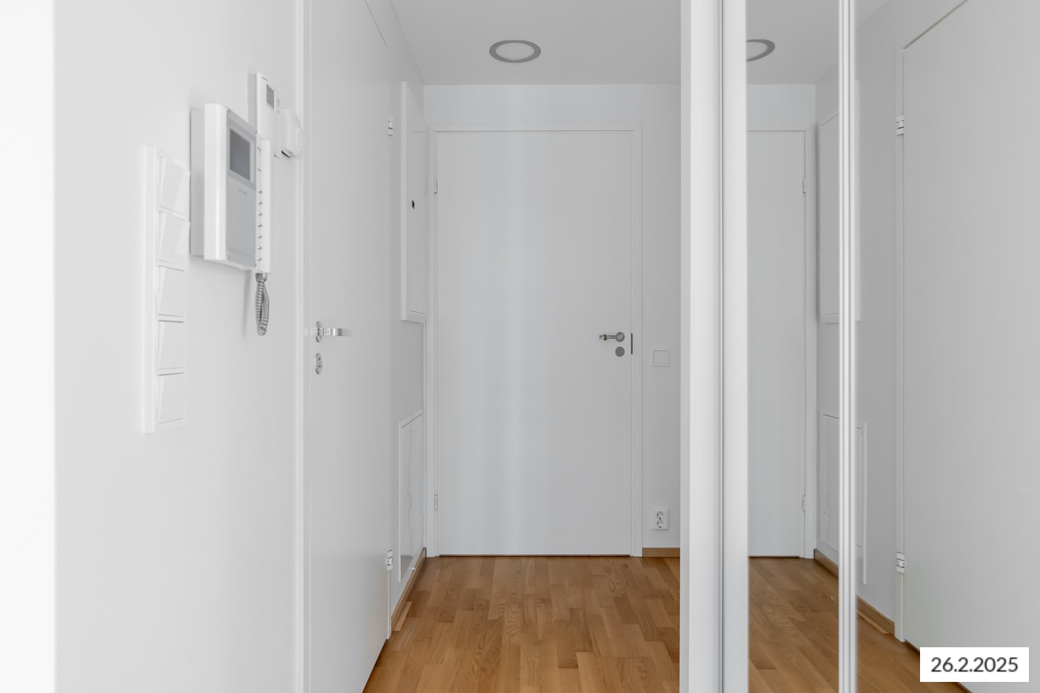 This eight-storey building on the Kupittaanpuisto block has thirty attractive rental homes, both studios and one-bedrooms, as well as owner-occupied homes. The homes have glassed-in balconies with clear-glass railings, for lots of natural light, and wood floor grates. The kitchens feature white cabinetry and laminate countertops and are equipped with a ceramic cooktop, separate oven, microwave, dishwasher and fridge-freezer. All appliances are white. The bathrooms have space for a washing machine and dryer. The units have underfloor heating and individual forced air ventilation system with separate cooling unit.