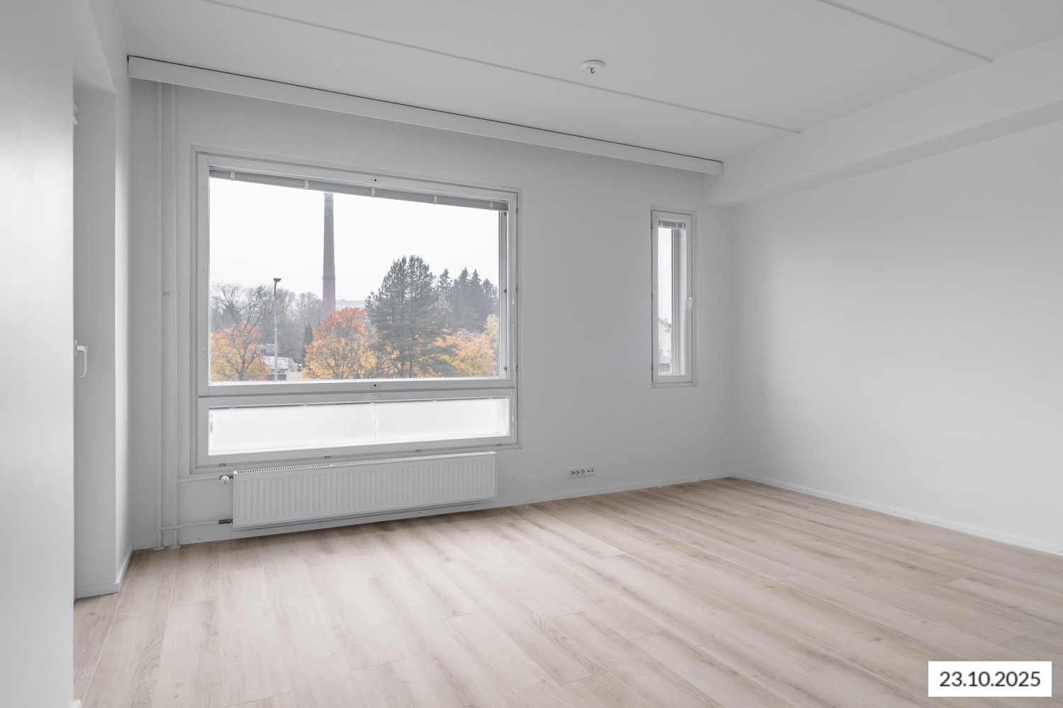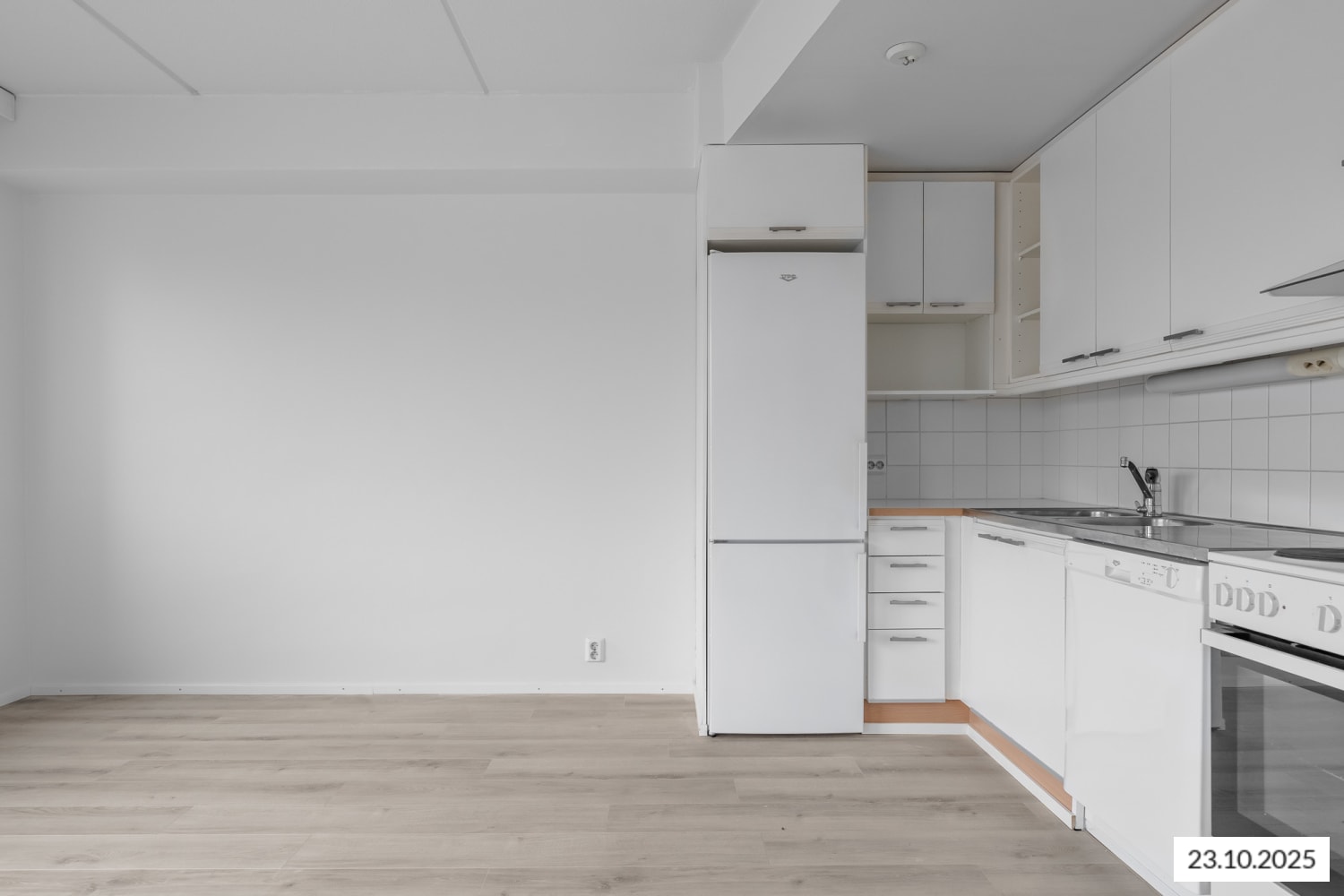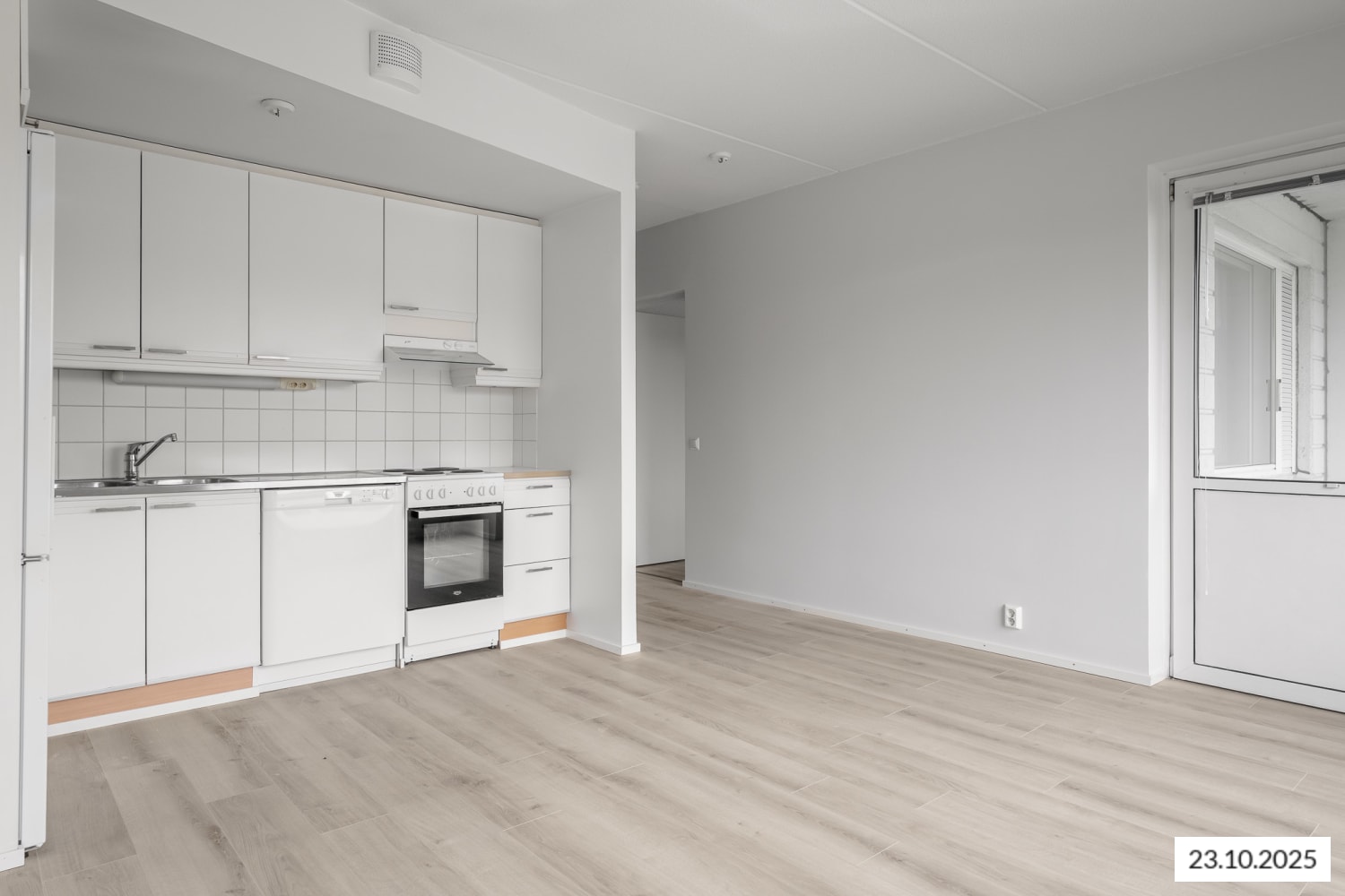 The light-coloured kitchen is equipped with a freezer-refrigerator, cooker and dishwasher. The bathroom features domestic Kide collection furniture and includes space for a washing machine. Enjoy relaxing in the sauna at your convenience, and cool down on your own balcony, which offers expansive views.