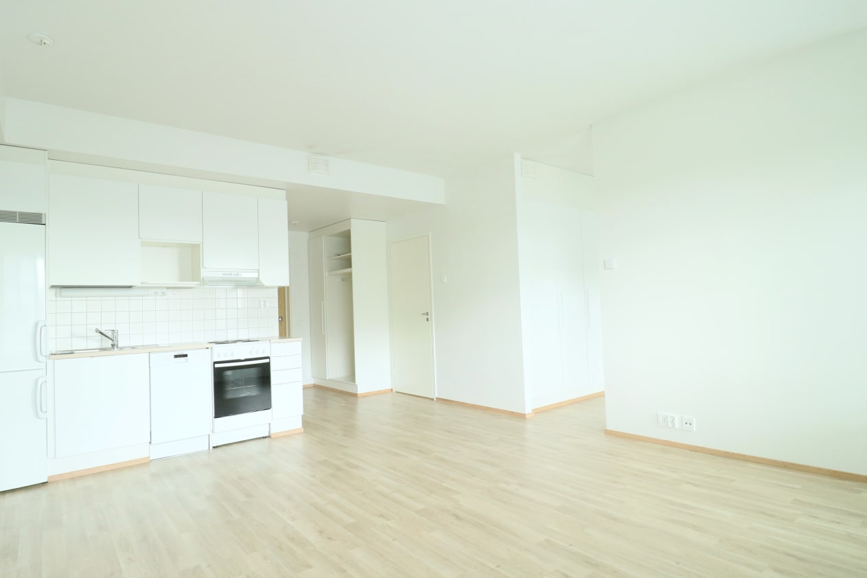 Gränsbackankuja 3 is a modern, stylish building in a new block of apartment buildings in Länsikeskus. The seven-storey building has a total of 54 rental homes from efficient studios and one-bedrooms to family homes with a sauna. The 42.5 sqm one-bedroom homes have a French balcony for a continental feel, while the ground floor apartments has a private garden area with a patio and the other apartments have a glassed-in balcony. The shared facilities, outdoor equipment and baby transport storage rooms, private storage units and civil defence shelter can be found on the ground floor. The grounds feature a play and sitting area as well as areas for drying laundry and dusting textiles.
