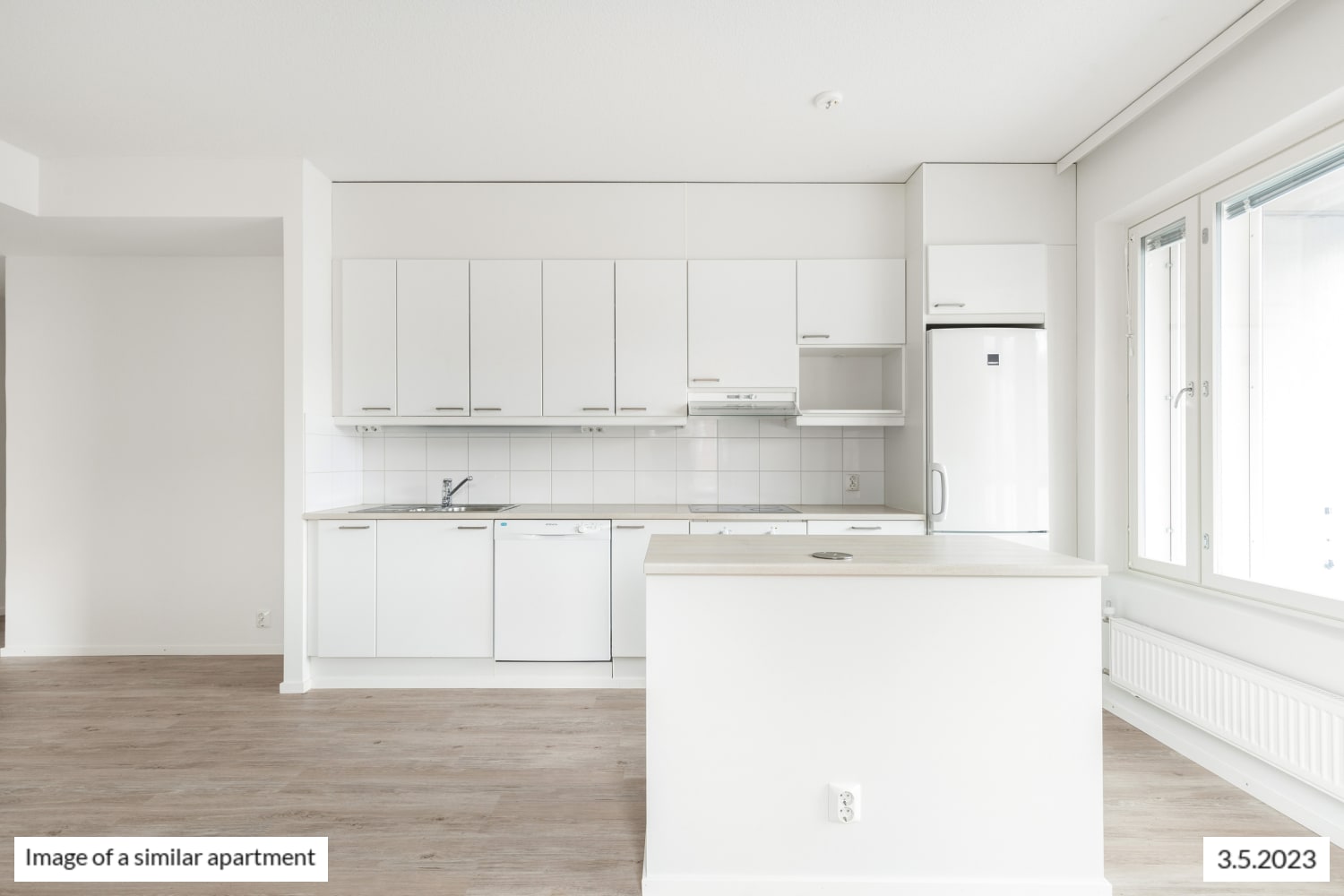 The apartments feature high-quality interior materials. The floors are finished with stylish oak-toned laminate, and the bathrooms are tiled. Each bathroom includes a reserved space for a washing machine. The homes are bright and easy to personalise to suit your own interior style. Kitchens come equipped with a ceramic electric hob, dishwasher, and fridge-freezer, with a designated space for a microwave.