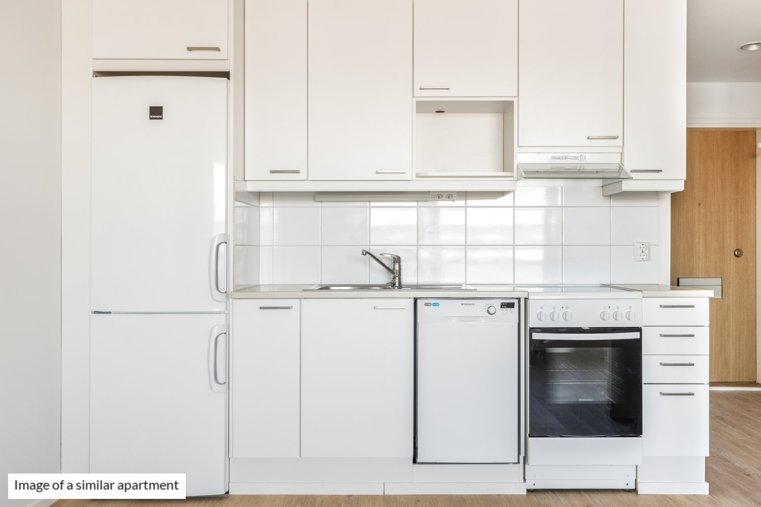 The apartments feature high-quality interior materials. The floors are finished with stylish oak-toned laminate, and the bathrooms are tiled. Each bathroom includes a reserved space for a washing machine. The homes are bright and easy to personalise to suit your own interior style. Kitchens come equipped with a ceramic electric hob, dishwasher, and fridge-freezer, with a designated space for a microwave.