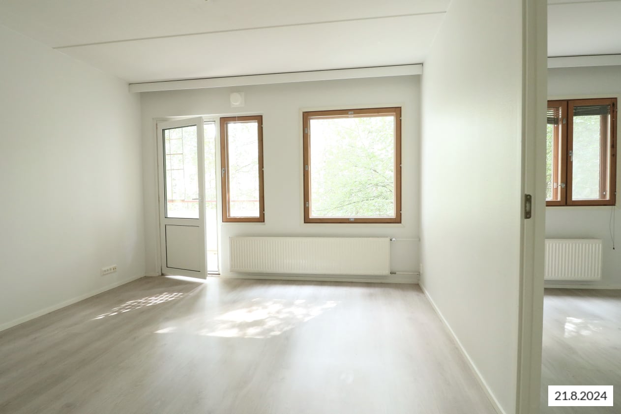 The apartment buildings in the green courtyard have clear and cozy two-bedroom and three-bedroom apartments. All apartments have their own sauna and balcony. There is a playground for children in the courtyard of the house. Feel free to inquire about a parking space for rent! The water fee, currently based on the number of residents, will switch to consumption-based billing starting December 1, 2024.