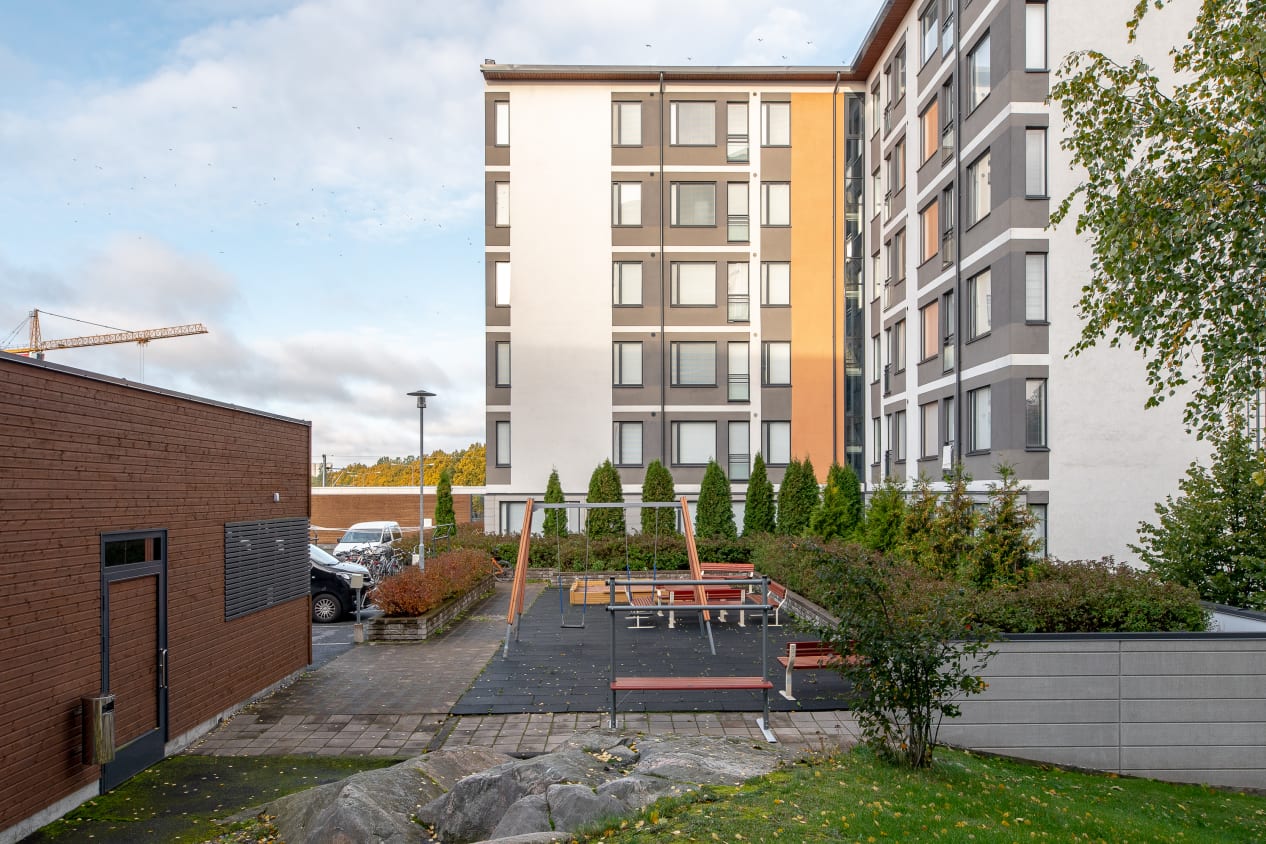 Located close to Turku Castle and the port, this building at the end of Puutarhakatu street has pleasant rental studios and one-bedroom apartments. Flooring is in parquet, and the kitchens have light-coloured units and are equipped with a fridge-freezer, ceramic cooker, extractor fan and hookups for a dishwasher. There is space for a washing machine in the tiled bathrooms. The larger one-bedrooms have a private sauna. All apartments have a French balcony. The water fee based on the number of residents will change to consumption-based billing starting December 1, 2024.