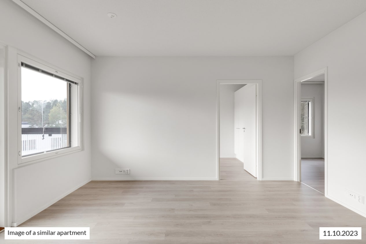 Completed in 2023, Sorakatu 9 is a sturdy, concrete-frame building in the best location in Skanssi. The many common areas of the building are located on floor 1: storage units, civil defence shelter, storage for baby carriages and bicycles, laundry and drying room, and sauna facilities. The outdoor equipment storage rooms can conveniently be accessed straight from Sorakatu. The laundry is equipped with two washing machines and one dryer, which can be used free of charge by booking a slot in the laundry booking system. Each apartment has a private storage unit. The homes are located on floors 2–8. The floors of the homes are done in pale oak-plank laminate, the walls are painted in a light colour. The windows are fitted with light-coloured Venetian blinds. The kitchen cabinet doors are microlaminate in cappuccino, a pale beige shade. The countertops are done in durable grey laminate and the backsplash in white panel. The kitchens are equipped with induction stovetop, oven, extractor fan and fridge-freezer, with space set aside for a microwave. The bathrooms have space and hook-ups for a washing machine and dryer. The homes are also equipped with laundry cabinets, which are in the bathroom in the 3-bedroom homes and in the entrance hallway in all others. The tiled bathrooms have wet underfloor heating. The building is heated with district heat. Each apartment has its own water meter. The building features centralised mechanical supply and exhaust ventilation with heat recovery. Ventilation enhancement takes place via the extractor hood. The building is equipped with iLOQ locks. The solar panels on the roofs of the house produce electricity for the property's needs.