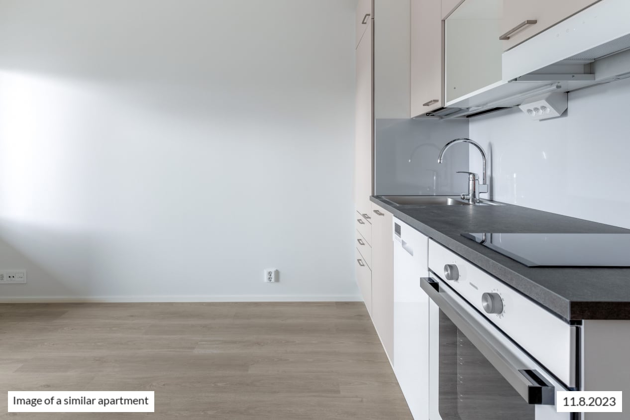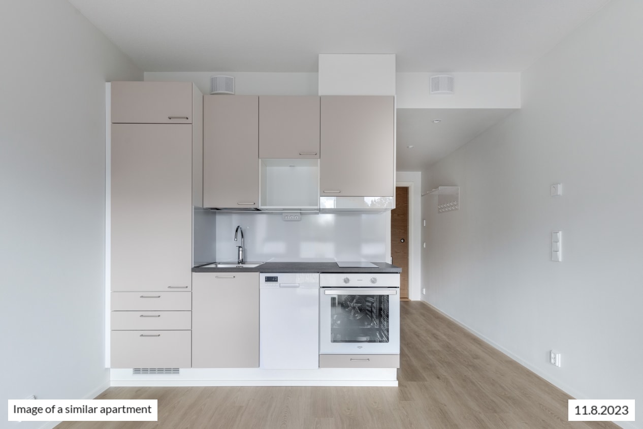 Completed in 2023, Sorakatu 9 is a sturdy, concrete-frame building in the best location in Skanssi. The many common areas of the building are located on floor 1: storage units, civil defence shelter, storage for baby carriages and bicycles, laundry and drying room, and sauna facilities. The outdoor equipment storage rooms can conveniently be accessed straight from Sorakatu. The laundry is equipped with two washing machines and one dryer, which can be used free of charge by booking a slot in the laundry booking system. Each apartment has a private storage unit. The homes are located on floors 2–8. The floors of the homes are done in pale oak-plank laminate, the walls are painted in a light colour. The windows are fitted with light-coloured Venetian blinds. The kitchen cabinet doors are microlaminate in cappuccino, a pale beige shade. The countertops are done in durable grey laminate and the backsplash in white panel. The kitchens are equipped with induction stovetop, oven, extractor fan and fridge-freezer, with space set aside for a microwave. The bathrooms have space and hook-ups for a washing machine and dryer. The homes are also equipped with laundry cabinets, which are in the bathroom in the 3-bedroom homes and in the entrance hallway in all others. The tiled bathrooms have wet underfloor heating. The building is heated with district heat. Each apartment has its own water meter. The building features centralised mechanical supply and exhaust ventilation with heat recovery. Ventilation enhancement takes place via the extractor hood. The building is equipped with iLOQ locks. The solar panels on the roofs of the house produce electricity for the property's needs.