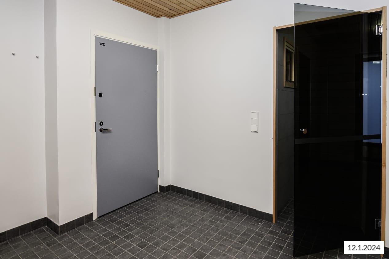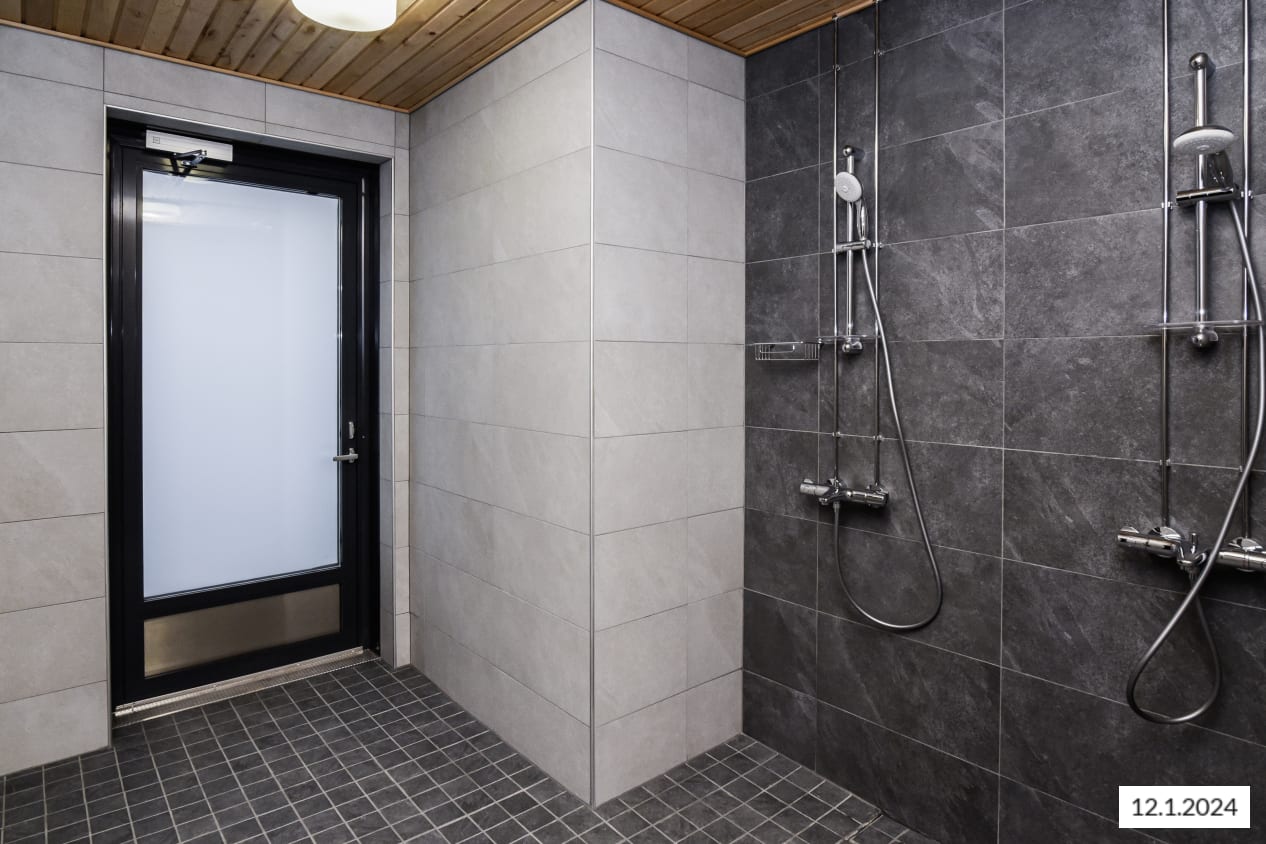 The bathrooms come with white Kide range furniture designed for SATO. The highly durable massive-laminate Kide furniture is made in Finland and has been awarded both the Key Flag and the Design from Finland symbols. The bathroom walls are done in white tiles, and the floor tiles are grey. The ceilings are in alder wood panelling. The bathrooms come with hookups and space for a washing machine and a dryer.