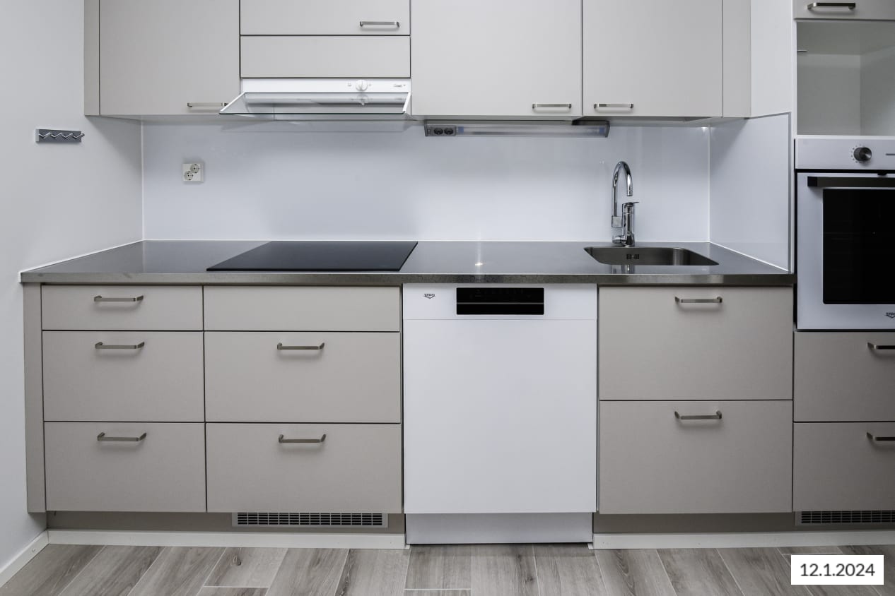 The interior decor materials, furnishings and fittings of these light-toned homes are timelessly stylish. The harmonious colour scheme is pleasing to many tastes: the clean layouts make it easy to furnish your home to your liking. The apartment floors are in pale oak woodgrain-effect laminate and the walls in an off-white shade. The entrance hallway of most of the apartments has wardrobes with sliding mirror doors. The kitchen cabinet doors are in beige and the backsplash in white glossy furniture board. The worktops are in lightly patterned stainless steel and the separate islands have a pale marble-effect countertop. The kitchens are equipped with a ceramic cooktop with a single- or dual-circuit hotplate, built-in oven, extractor fan, and either a 40 or 60 cm dishwasher and a fridge-freezer. All appliances are white. There is space for a microwave. The kitchen under-sink cabinet is equipped with SATO’s Seth waste unit consisting of coloured waste bins for easy recycling. The bathrooms come with white Kide range furniture designed for SATO. The highly durable massive-laminate Kide furniture is made in Finland and has been awarded both the Key Flag and the Design from Finland symbols. The bathroom walls are done in white tiles, and the floor tiles are grey. The ceilings are in alder wood panelling. The bathrooms come with hookups and space for a washing machine and a dryer. The apartments have mechanical supply and exhaust ventilation, district heating and an apartment-specific water metering system. The entrance hallways and bathrooms have fixed light fittings and the windows are fitted with white Venetian blinds. The building is equipped with an iLOQ locking system as well as a door phone system.