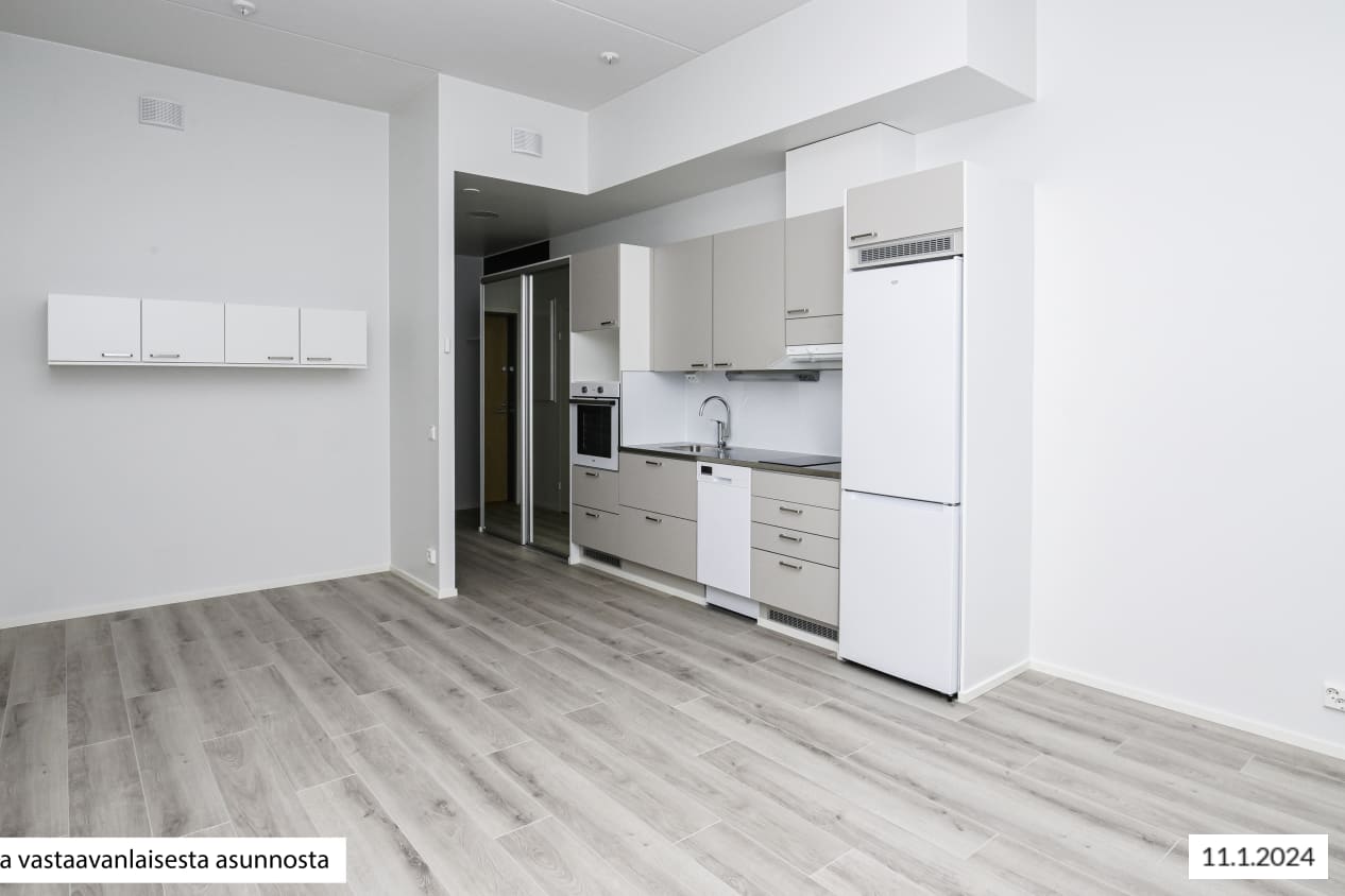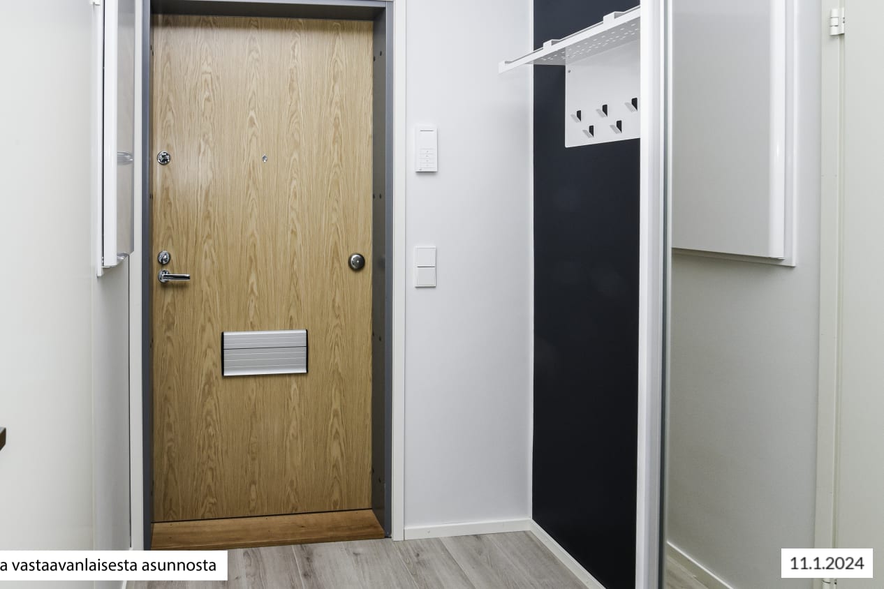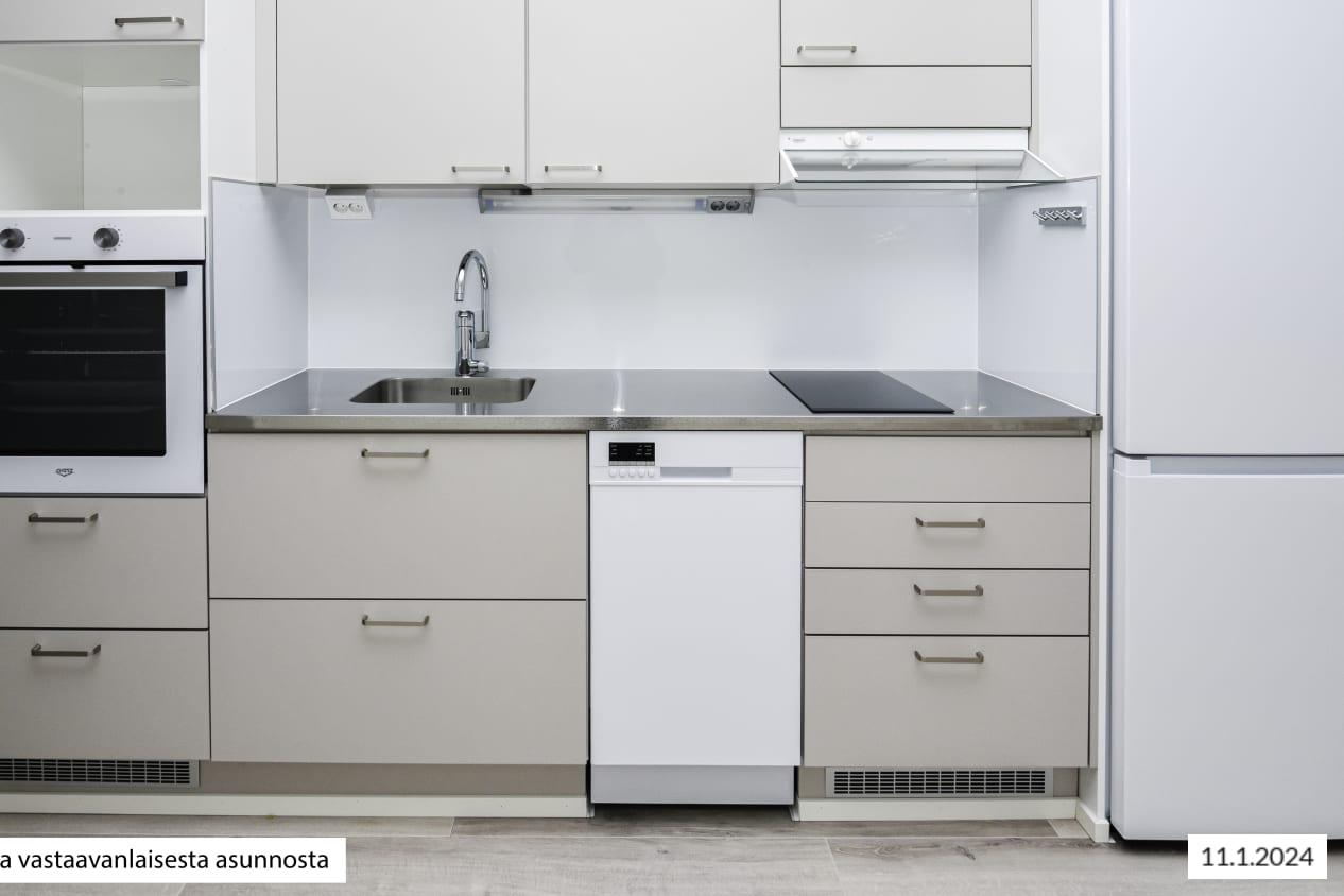 The interior decor materials, furnishings and fittings of these light-toned homes are timelessly stylish. The harmonious colour scheme is pleasing to many tastes: the clean layouts make it easy to furnish your home to your liking. The apartment floors are in pale oak woodgrain-effect laminate and the walls in an off-white shade. The entrance hallway of most of the apartments has wardrobes with sliding mirror doors. The kitchen cabinet doors are in beige and the backsplash in white glossy furniture board. The worktops are in lightly patterned stainless steel and the separate islands have a pale marble-effect countertop. The kitchens are equipped with a ceramic cooktop with a single- or dual-circuit hotplate, built-in oven, extractor fan, and either a 40 or 60 cm dishwasher and a fridge-freezer. All appliances are white. There is space for a microwave. The kitchen under-sink cabinet is equipped with SATO’s Seth waste unit consisting of coloured waste bins for easy recycling. The bathrooms come with white Kide range furniture designed for SATO. The highly durable massive-laminate Kide furniture is made in Finland and has been awarded both the Key Flag and the Design from Finland symbols. The bathroom walls are done in white tiles, and the floor tiles are grey. The ceilings are in alder wood panelling. The bathrooms come with hookups and space for a washing machine and a dryer. The apartments have mechanical supply and exhaust ventilation, district heating and an apartment-specific water metering system. The entrance hallways and bathrooms have fixed light fittings and the windows are fitted with white Venetian blinds. The building is equipped with an iLOQ locking system as well as a door phone system.