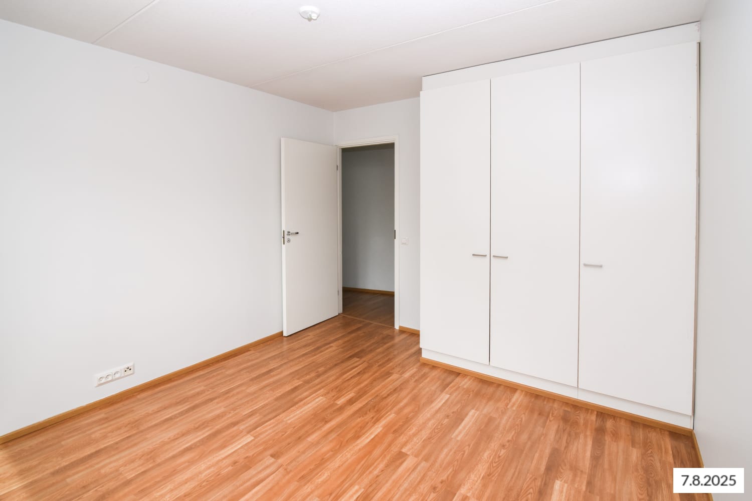 The kitchen is equipped with a cooker and a freezer-refrigerator, and there's room for your dishwasher too. Everyday storage is made easier with a walk-in wardrobe located by the entrance. The generously sized bathroom has space for a washing machine.