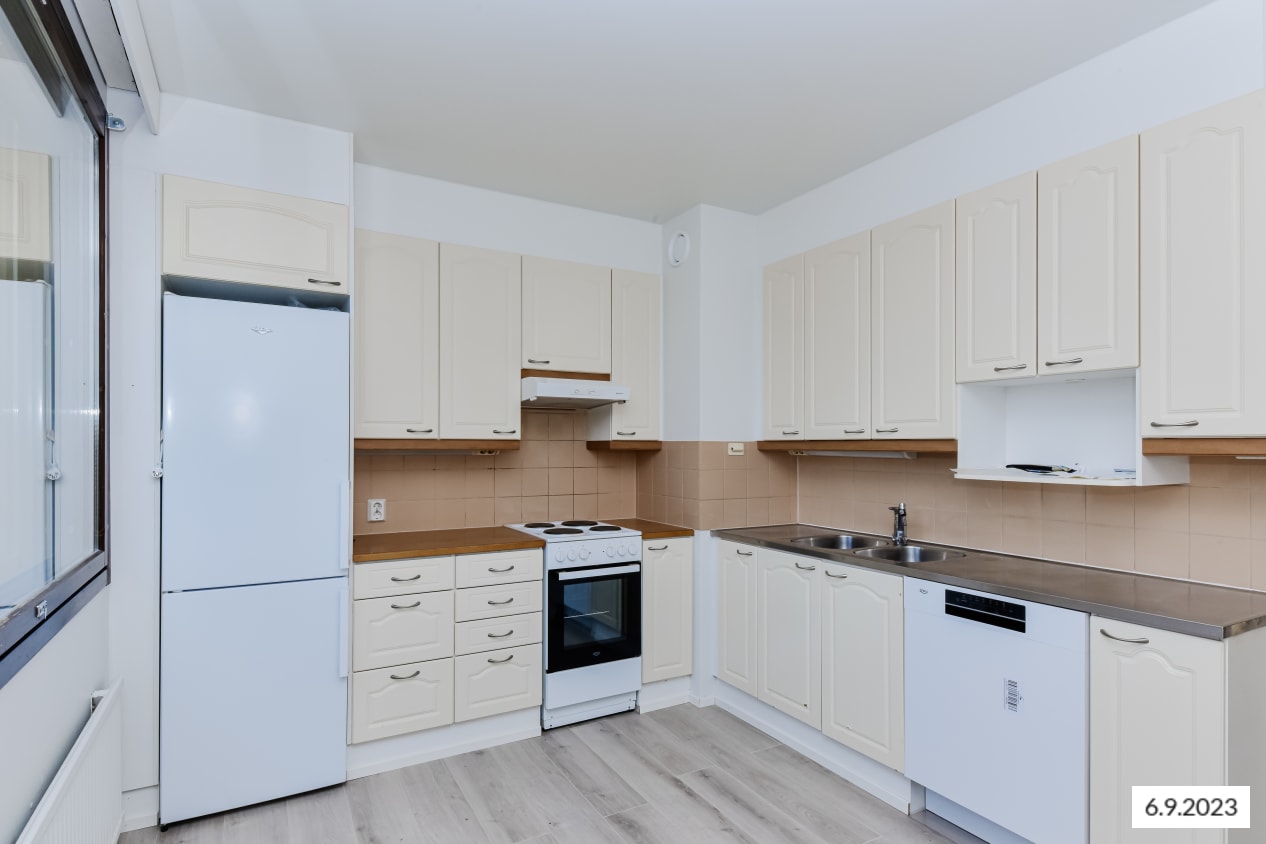 This retro-inspired 2-bedroom home in a lush green area is looking for new residents! The apartment features clean finishes and a straightforward layout. Both bedrooms offer practical storage with vanilla-toned wardrobes, and the floors are covered with oak-effect laminate. The spacious living room opens to a glazed balcony with lovely green views—an ideal spot for enjoying your morning coffee.