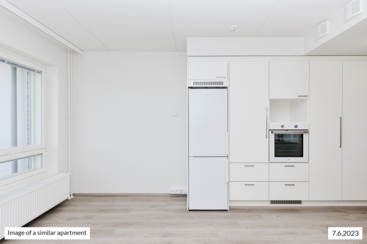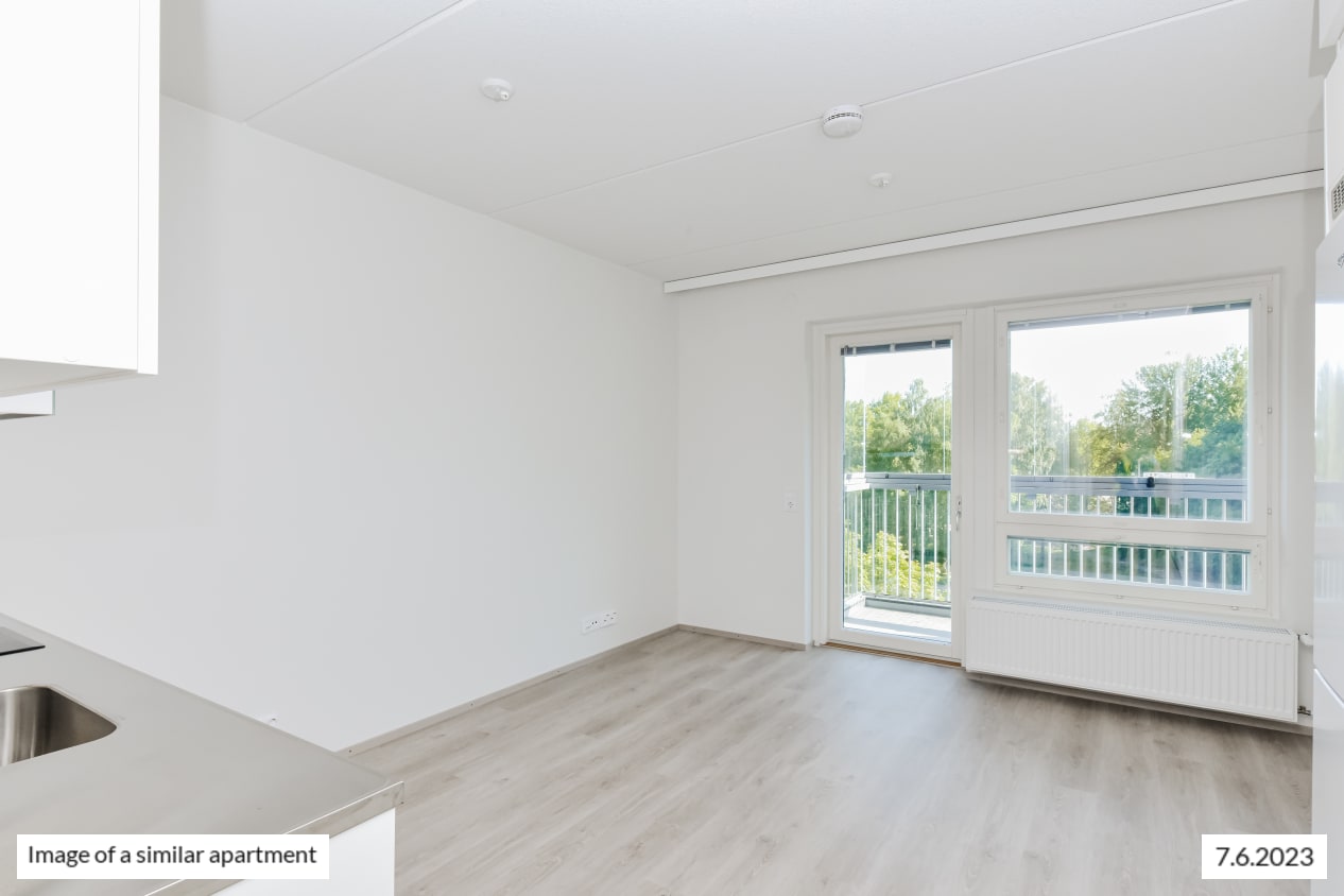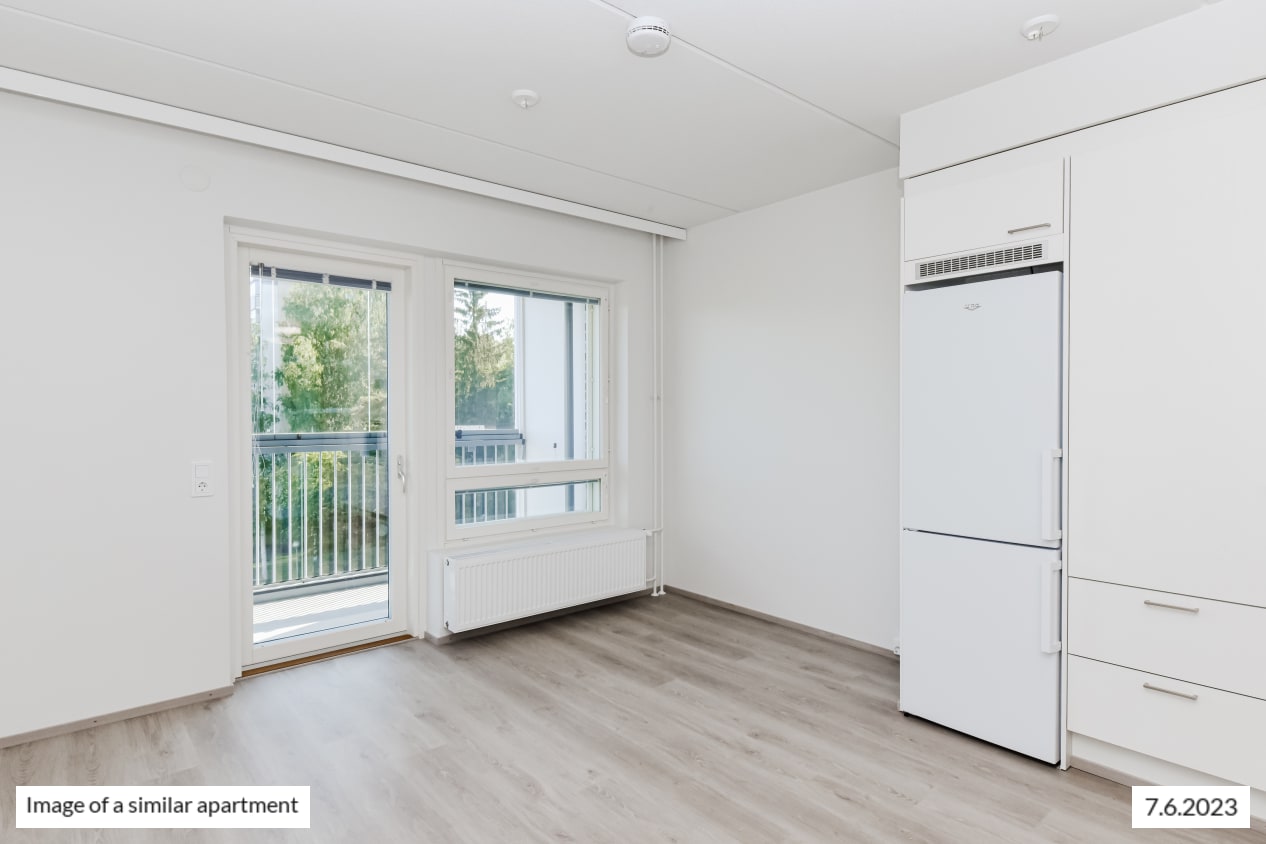 This functional little home offers views of the peaceful courtyard. The pale-toned kitchen of the studio is combined seamlessly with the living area. In the summer, you can have breakfast on your own, glassed-in balcony while listening to the birds and the homely sounds of the courtyard.