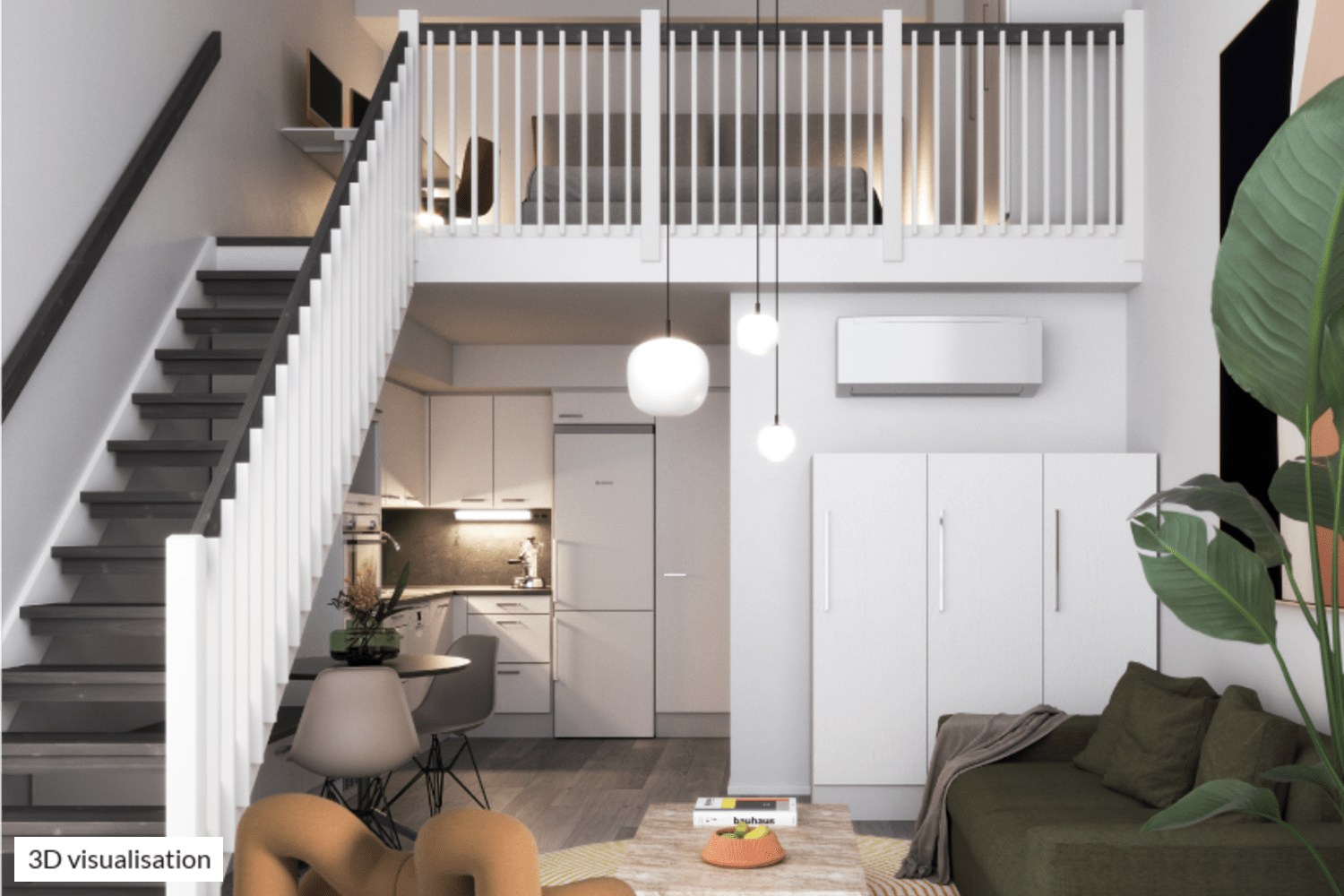 This airy little home offers northeast-facing views of Raudikkokuja street. This light-filled loft-style studio works as a home as well as a business space. The living room ceiling height is more than four metres. The functional kitchen is slightly separate from the living area. There is a loft with 1.8 metres of headroom in most parts above the kitchen that can be used for storage or perhaps as a sleeping area. The space under the loft stairs features a cosy bench also providing storage space. In the summer, the downstairs lounging area can be extended to your private garden space. How about breakfast on your patio, listening to the birds and the sounds from the courtyard?