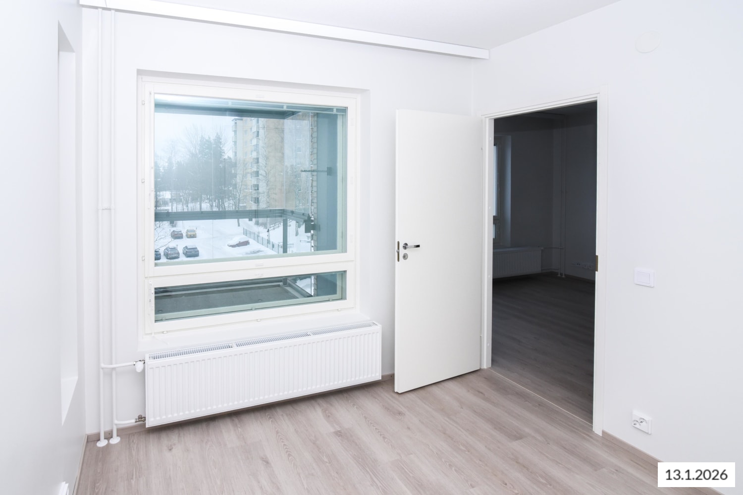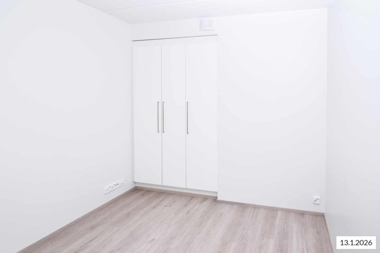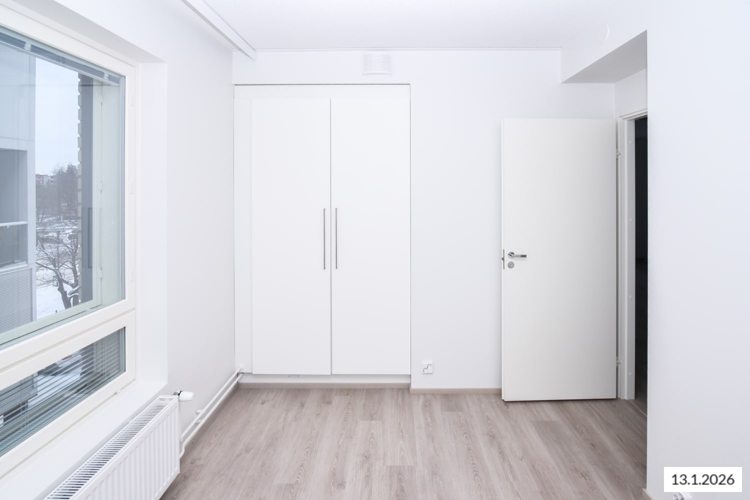 This airy home offers views in two directions: overlooking Raudikkokuja street and facing northwest. The kitchen of this smartly laid out two-bedroom home is combined seamlessly with the living room that can be extended to your large, glassed-in balcony in the summer. The balcony provides a view of the rocky outcrop with a strip of forest as well as a walking and running track taking you all the way to Sotunki. There is wardrobe space in both bedrooms as well as in the entrance hallway.