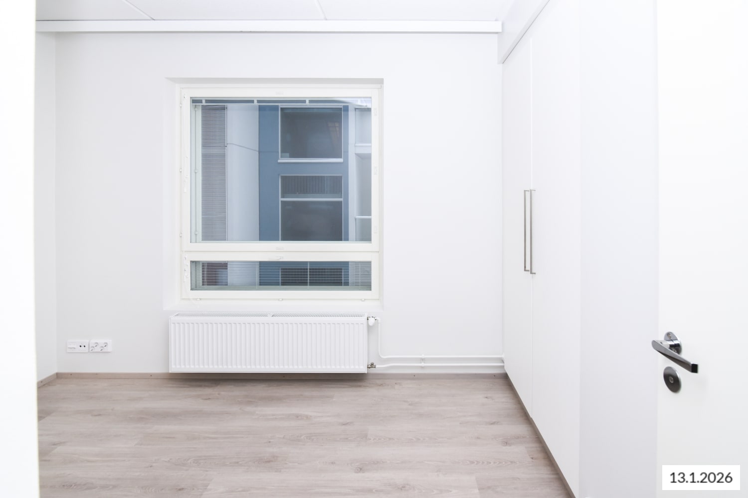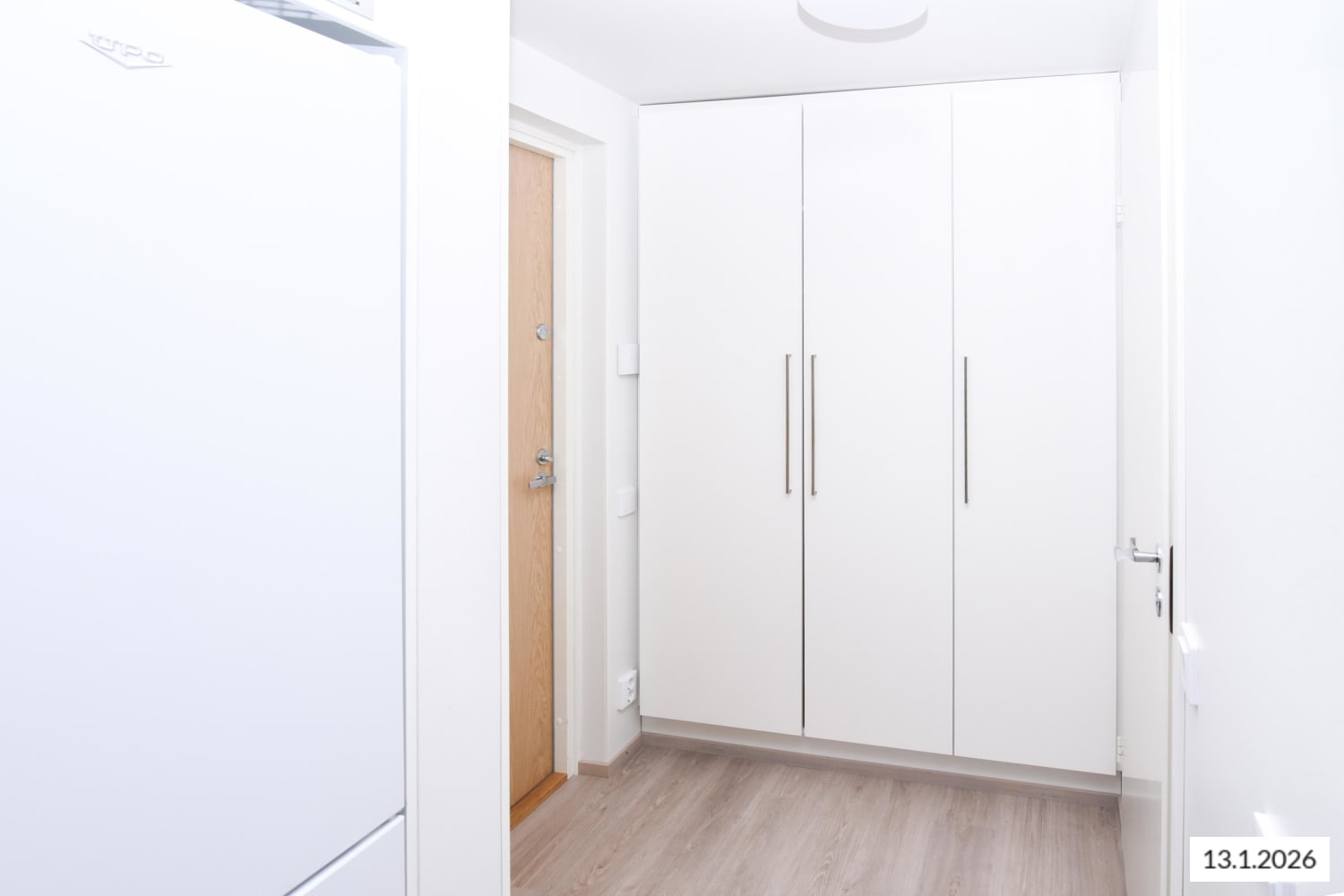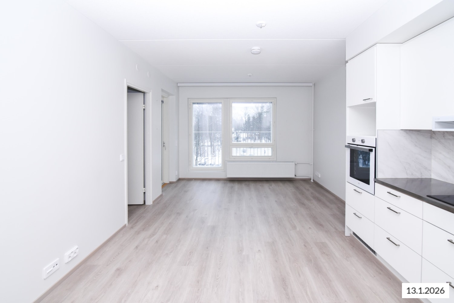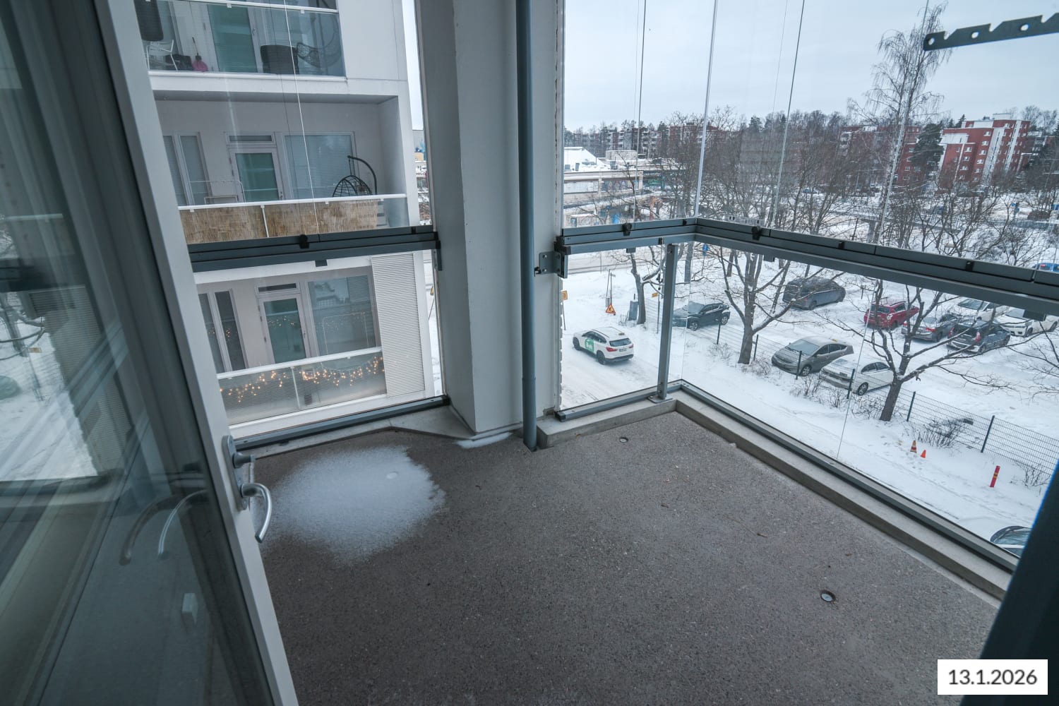 This airy home offers views in two directions: overlooking Raudikkokuja street and facing northwest. The kitchen of this smartly laid out two-bedroom home is combined seamlessly with the living room that can be extended to your large, glassed-in balcony in the summer. The balcony provides a view of the rocky outcrop with a strip of forest as well as a walking and running track taking you all the way to Sotunki. There is wardrobe space in both bedrooms as well as in the entrance hallway.