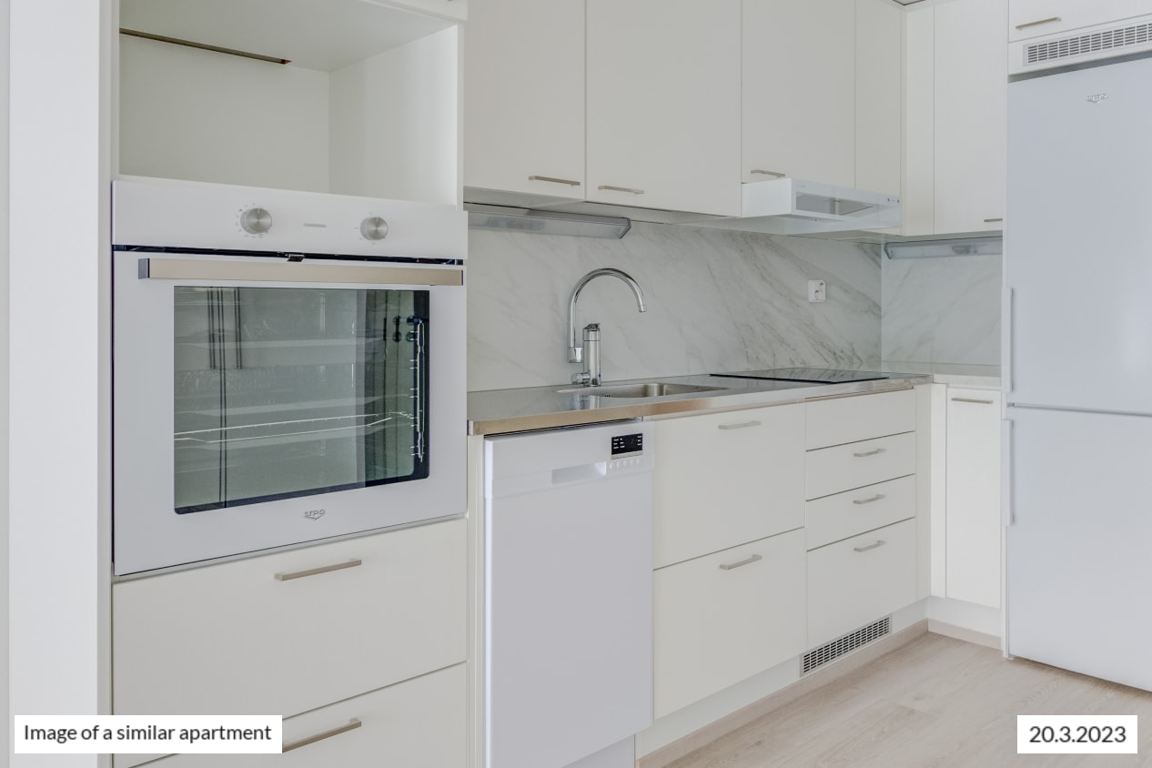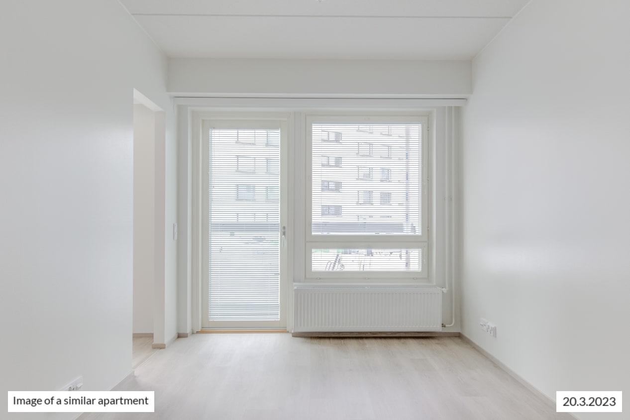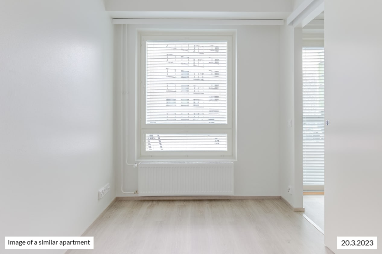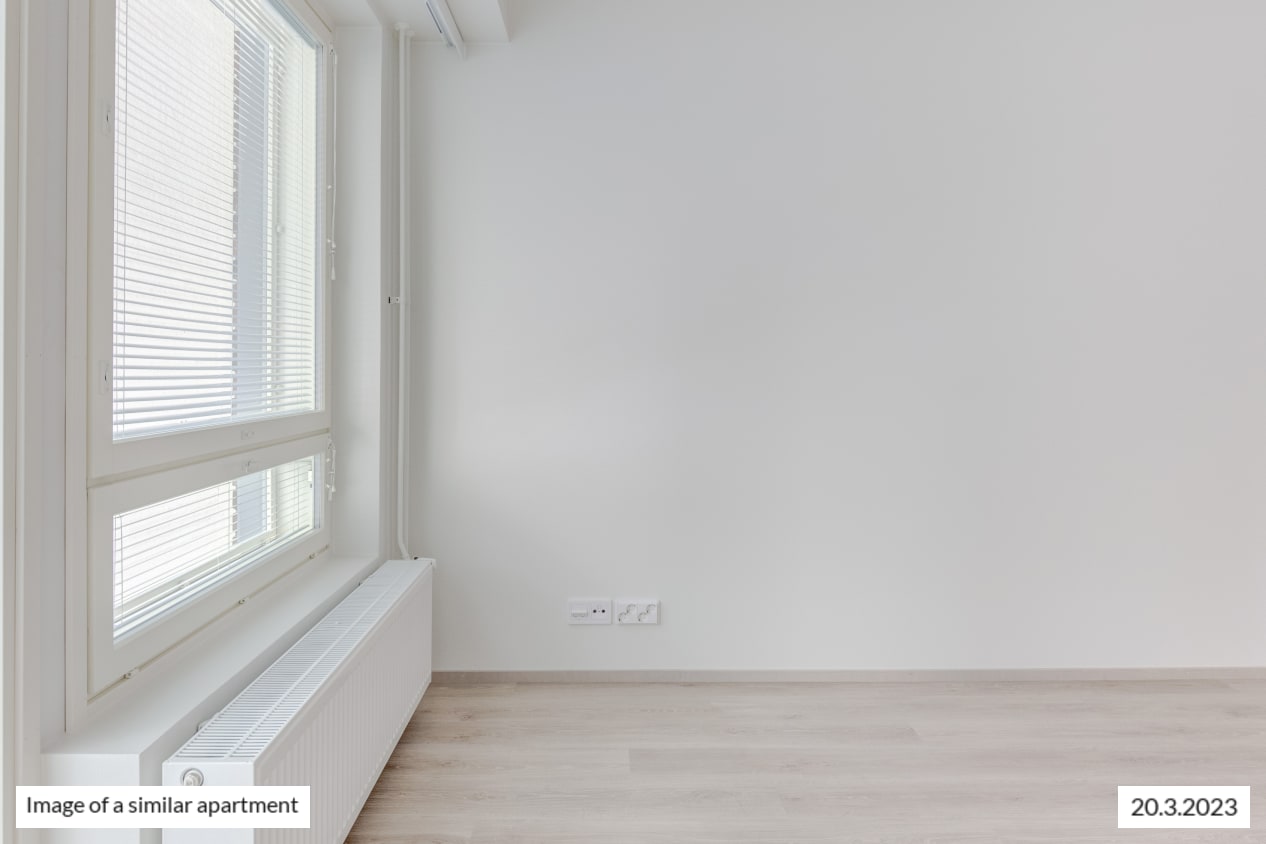 This efficiently laid out one-bedroom home offers northwest-facing views of the courtyard. The functional kitchen is slightly separate from the living room yet still part of the same, airy space. It is easy separate the living space into a lounging area with your sofa and a dining area, for example. In the summer, you can extend your living space to your own, glassed-in balcony. How about breakfast on your balcony, listening to the birds and the homely sounds from the courtyard?