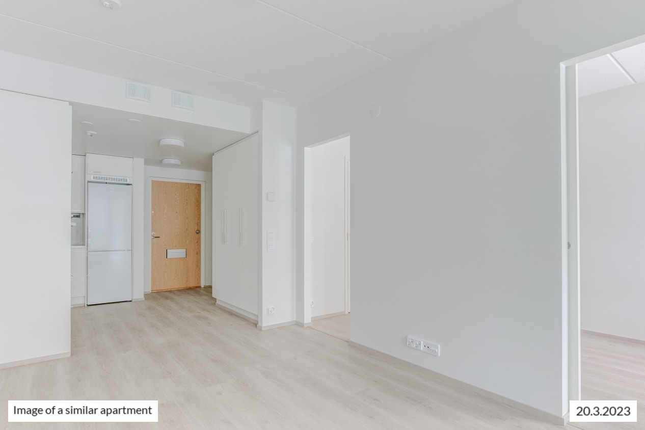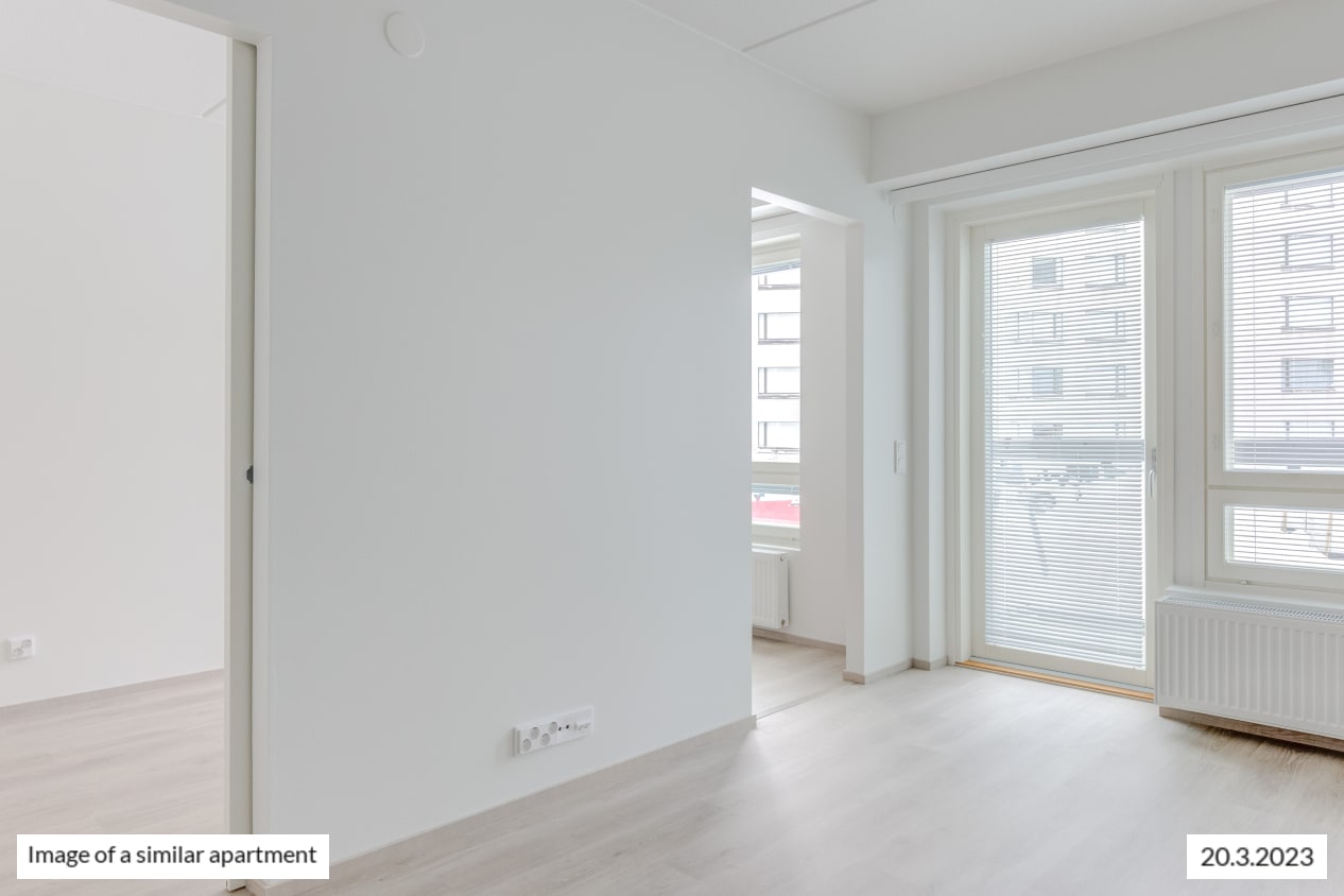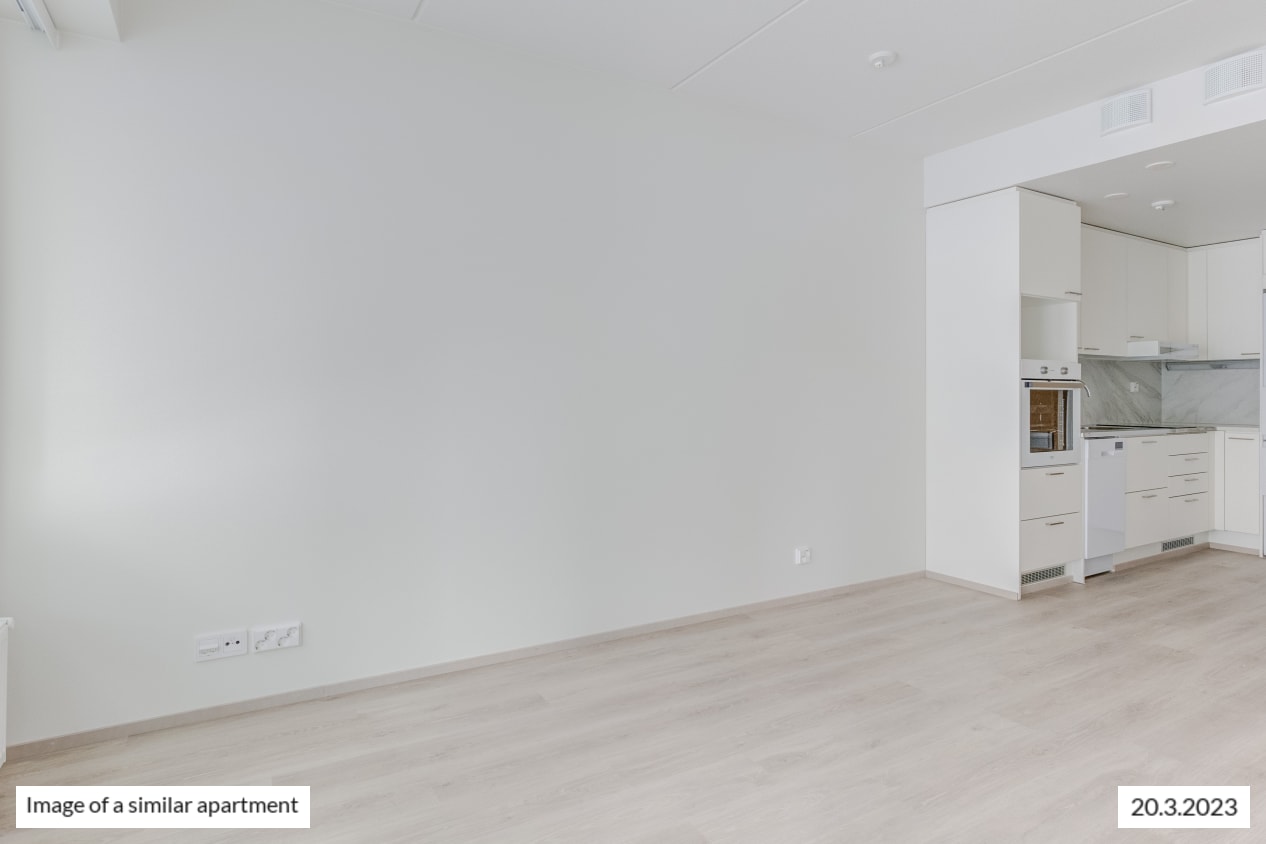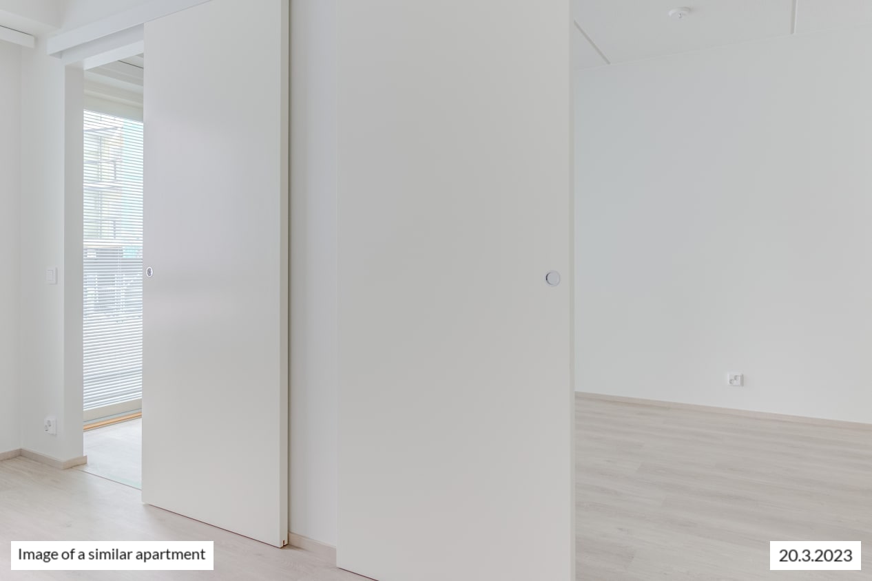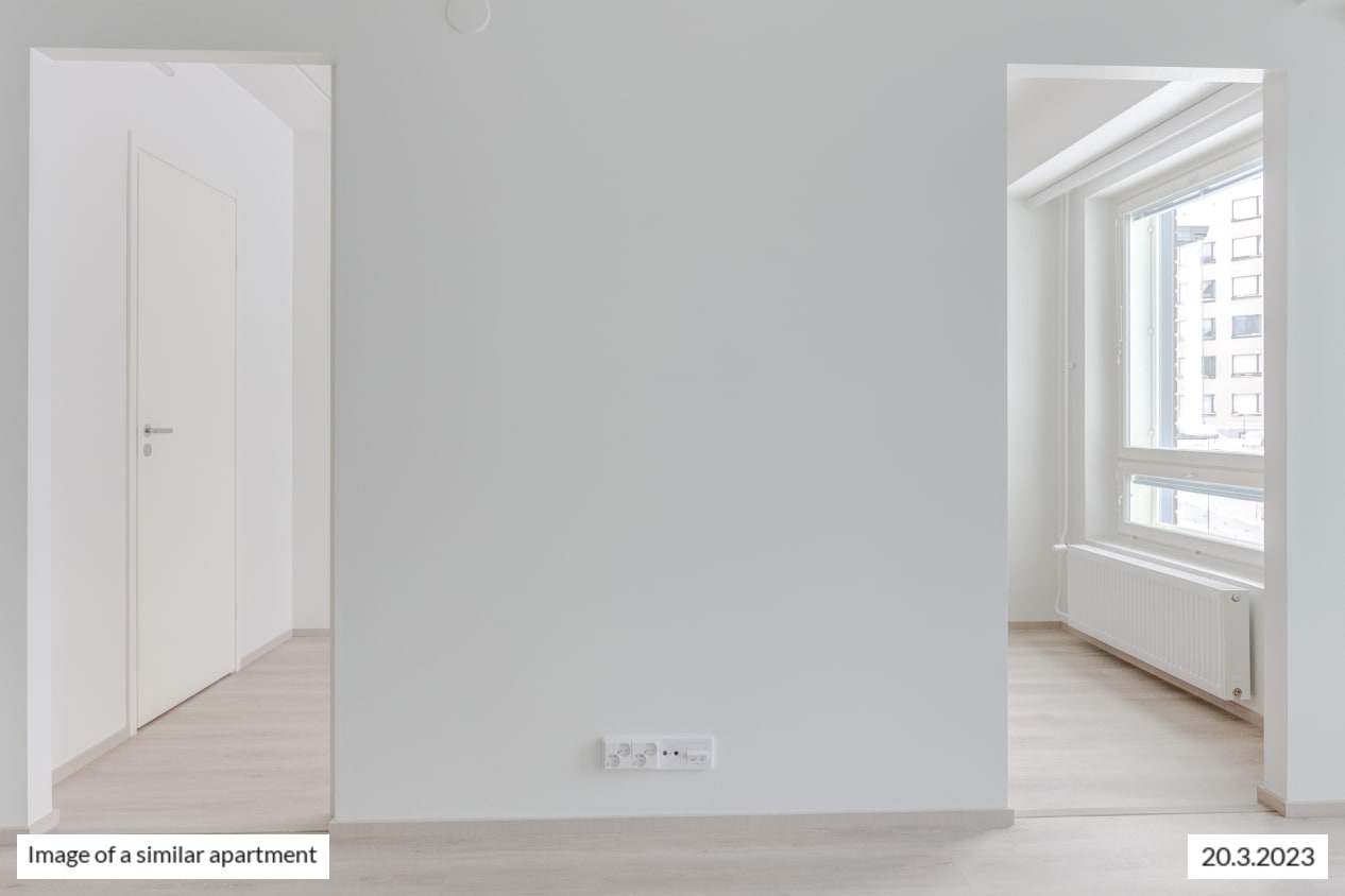 This efficiently laid out one-bedroom home offers northwest-facing views of the courtyard. The functional kitchen is slightly separate from the living room yet still part of the same, airy space. It is easy separate the living space into a lounging area with your sofa and a dining area, for example. In the summer, you can extend your living space to your own, glassed-in balcony. How about breakfast on your balcony, listening to the birds and the homely sounds from the courtyard?